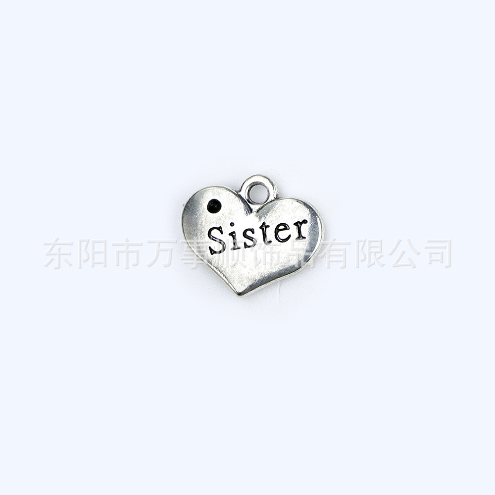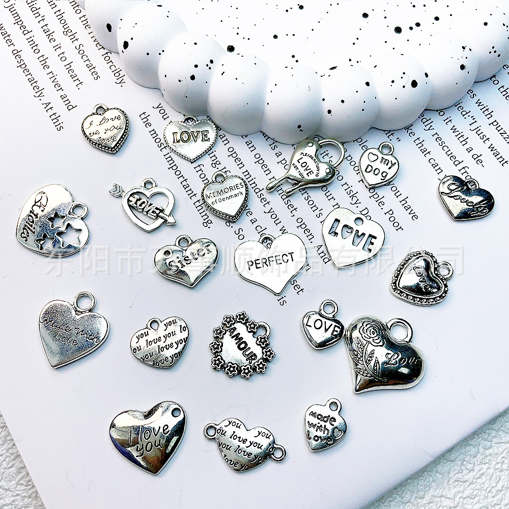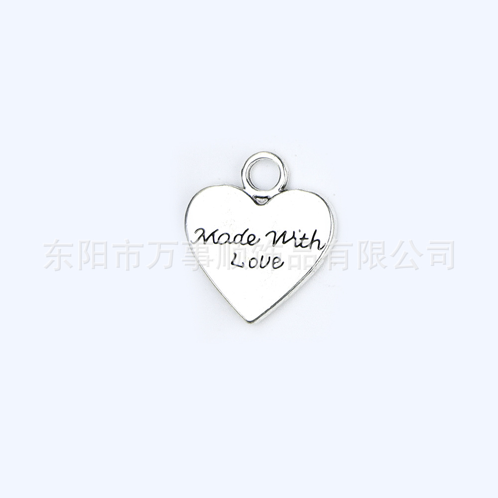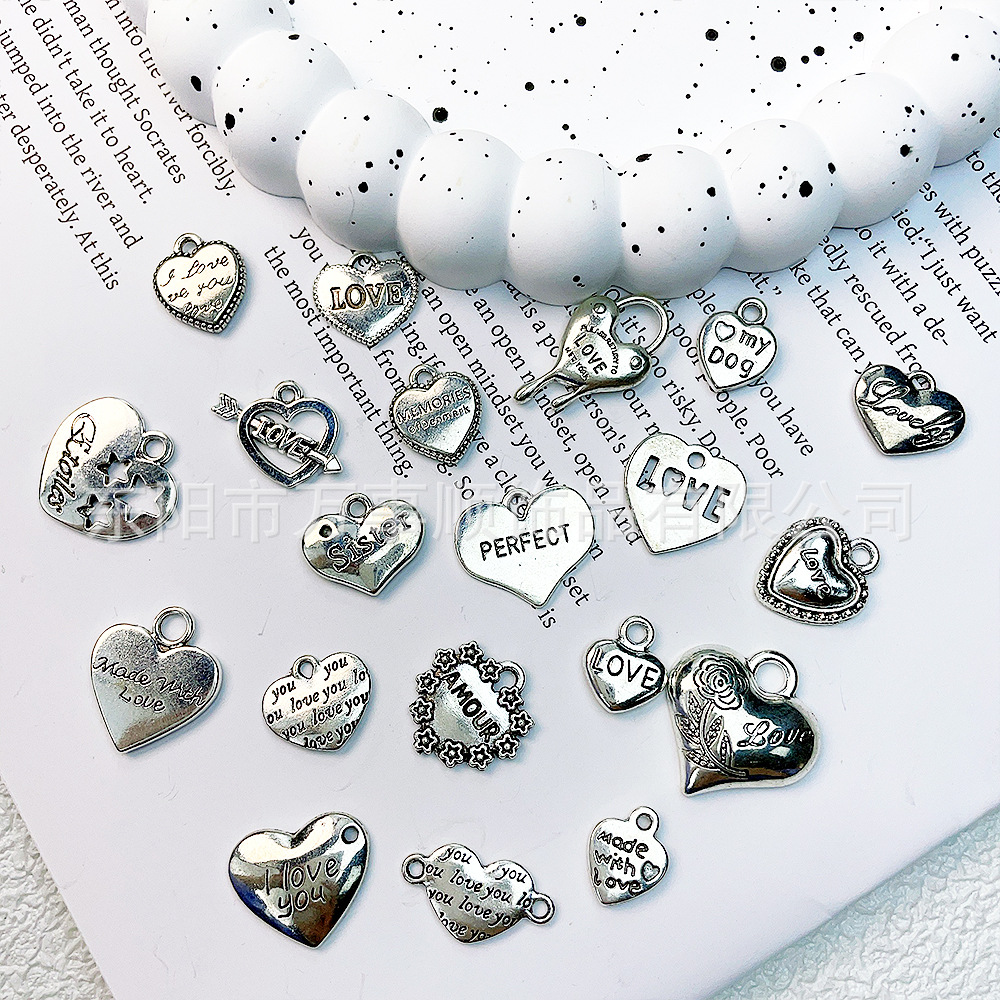 跨境专供藏银复古合金diy配饰英文字牌爱心吊牌项链饰品配件批发