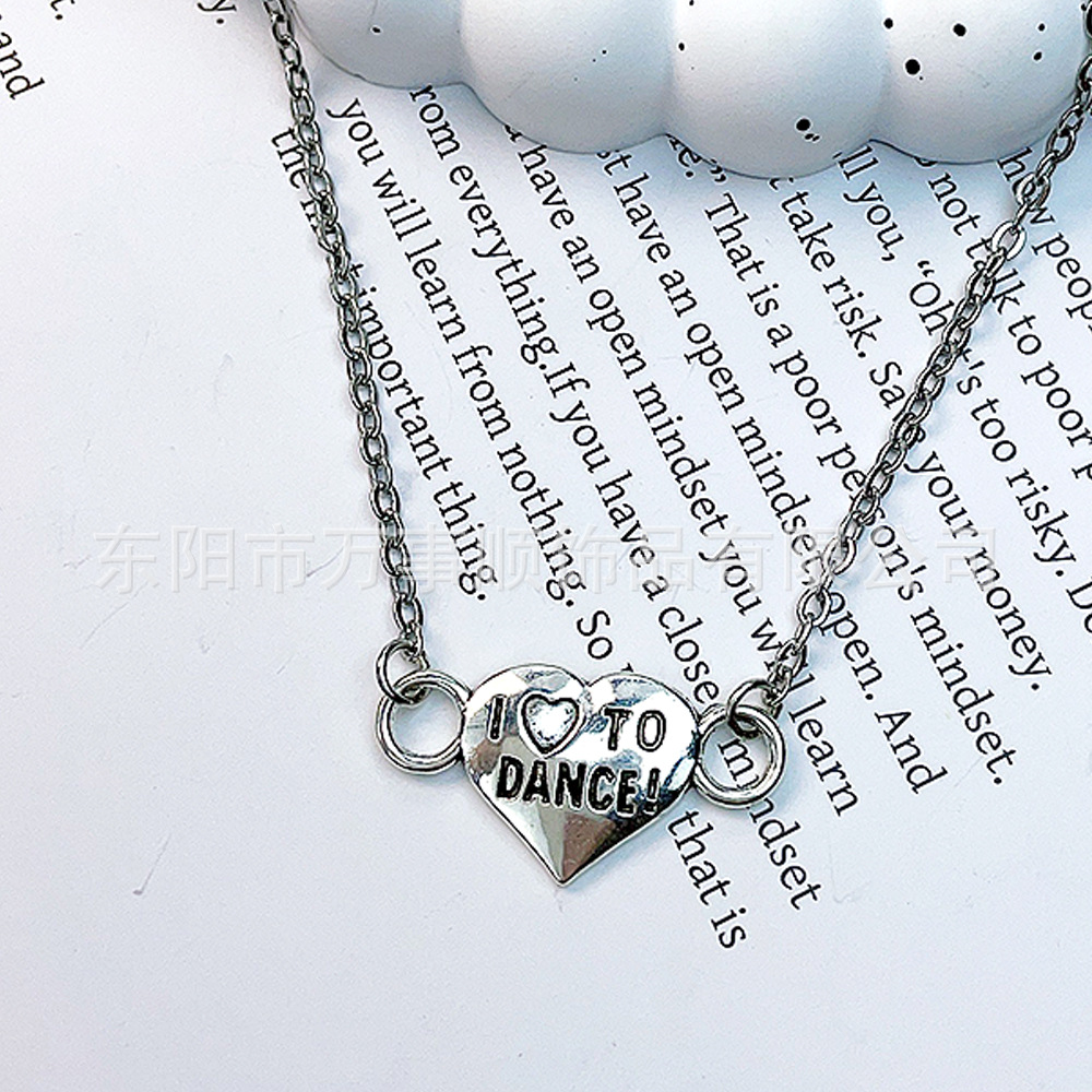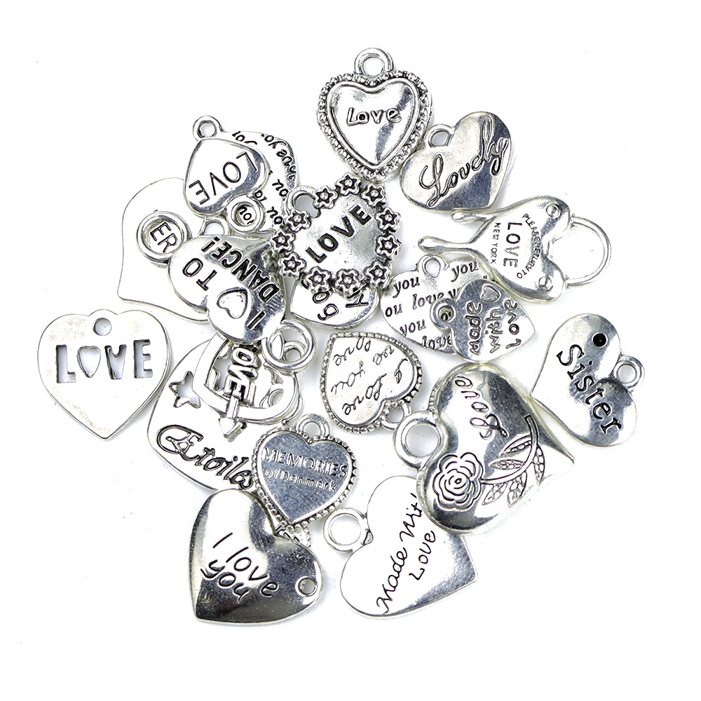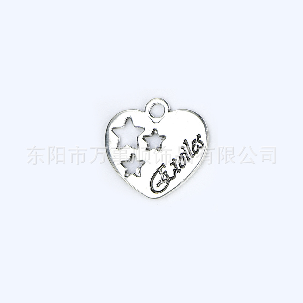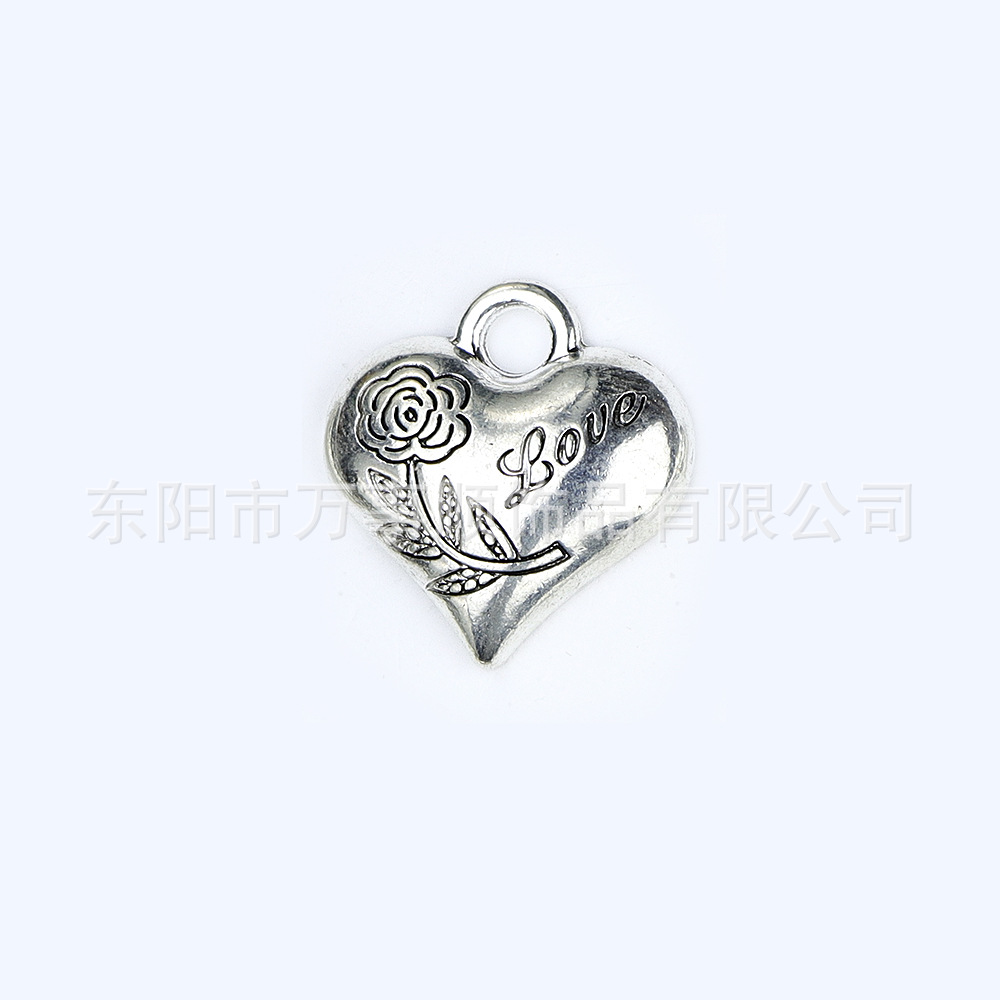 跨境专供藏银复古合金diy配饰英文字牌爱心吊牌项链饰品配件批发
