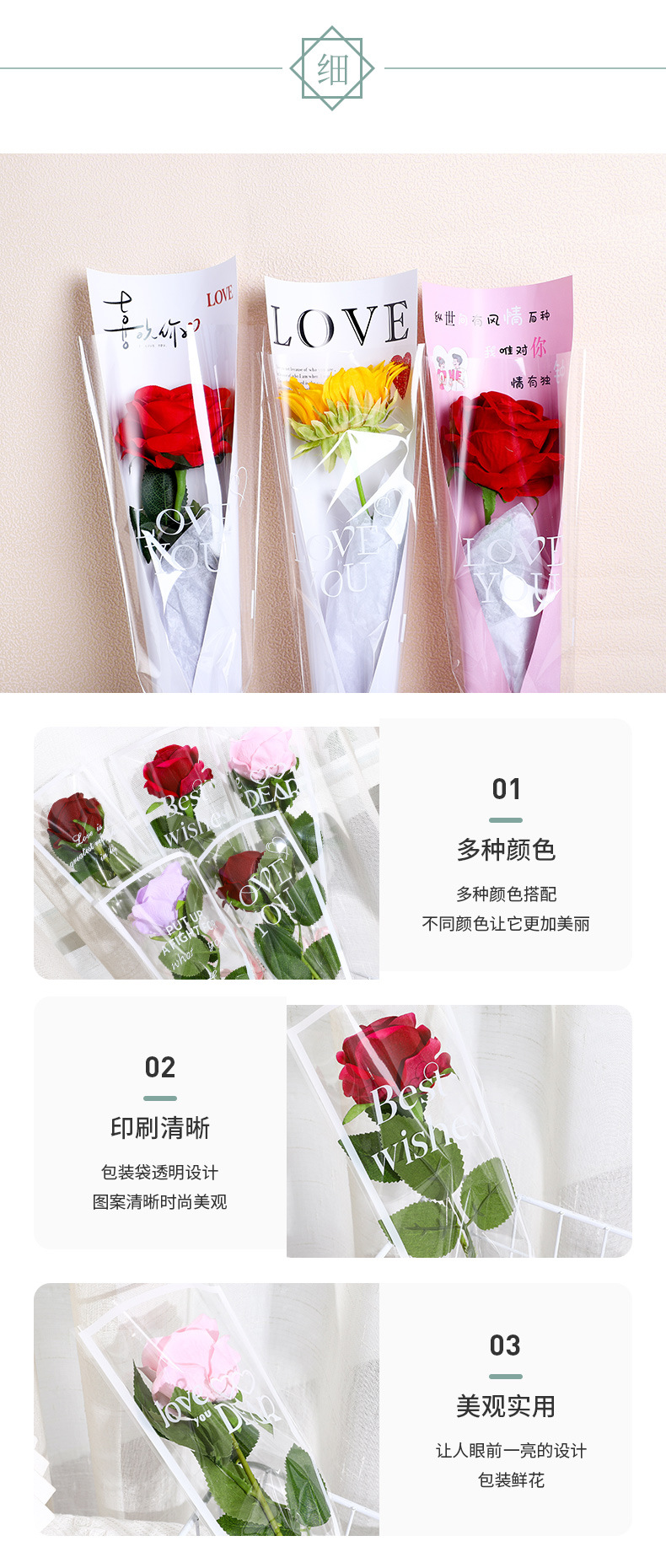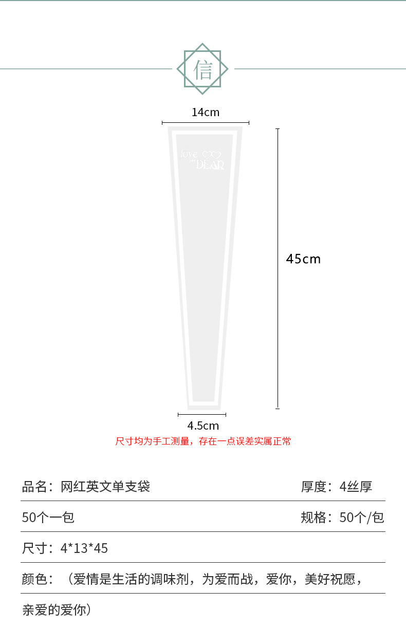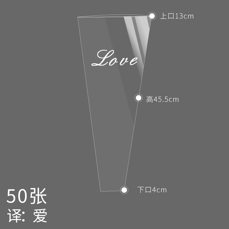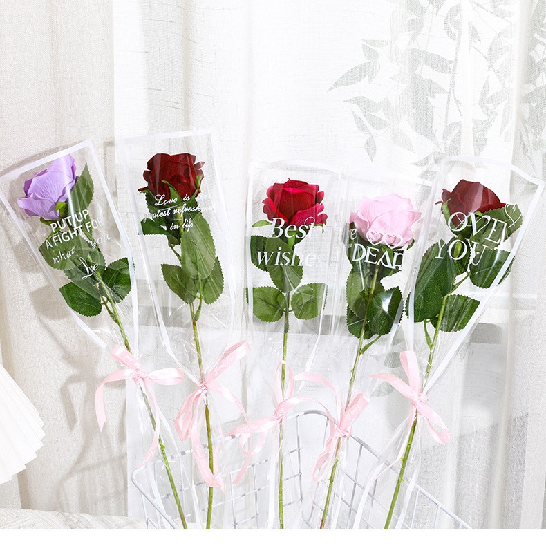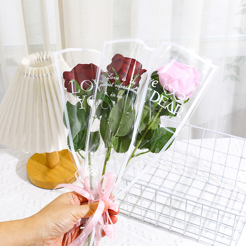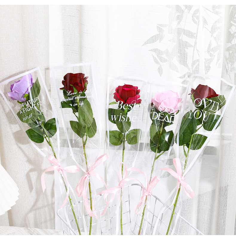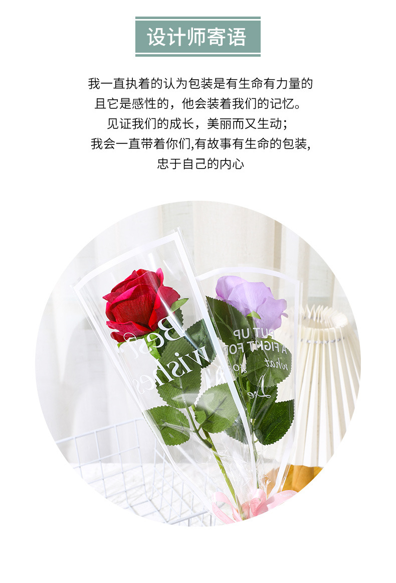 鲜花包装袋圣诞透明英文单支袋送女友玫瑰花袋花束花店花艺包装纸