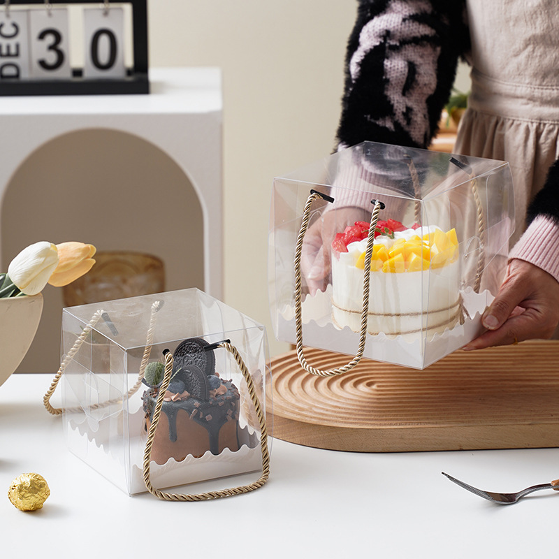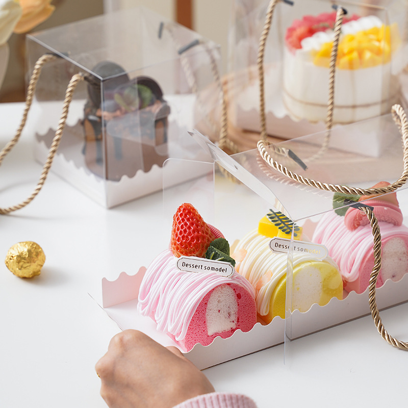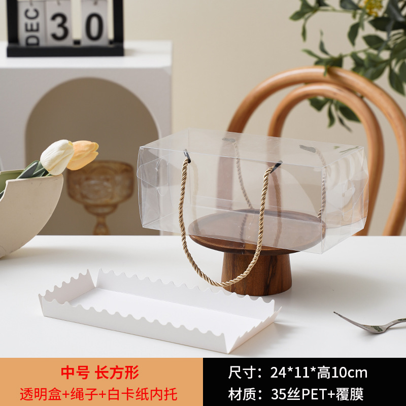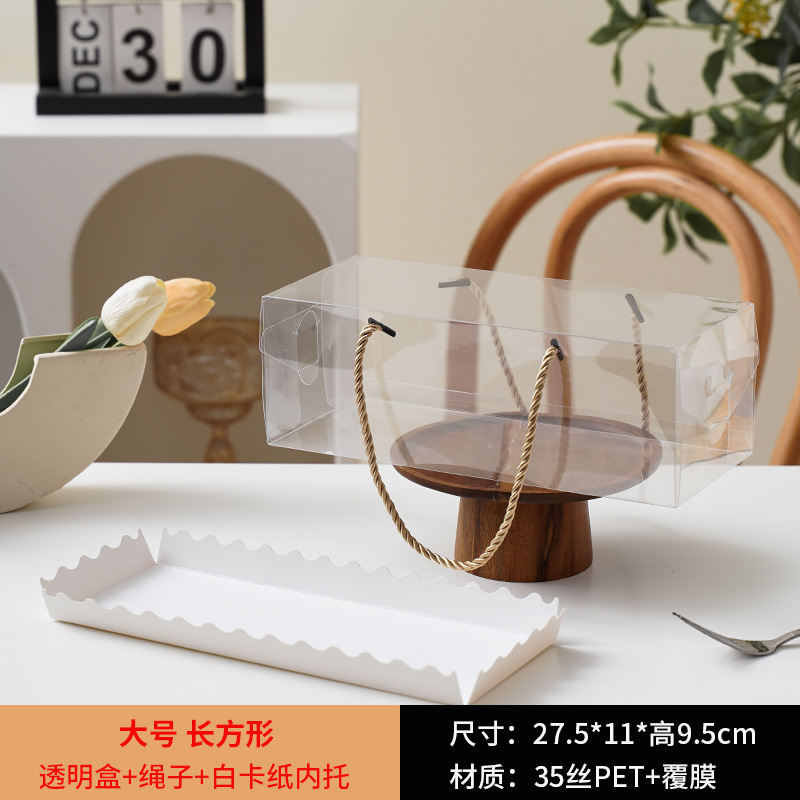 网红手提透明蛋糕卷盒子加厚蛋糕打包盒方形瑞士卷烘焙包装盒直销