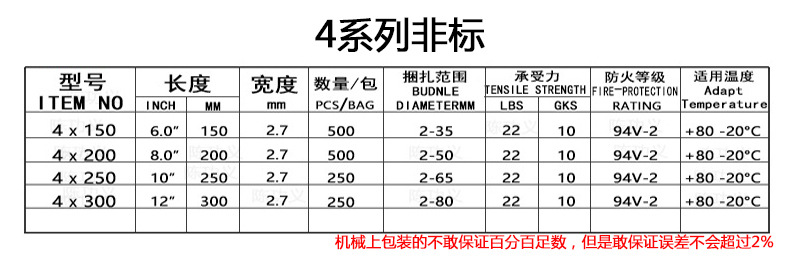 | 4*150 non-standard 2.7mm wide 500 pieces/bag(4*150非标2.7mm宽 500条/包) | USD $0.95 | 97849 pack available |