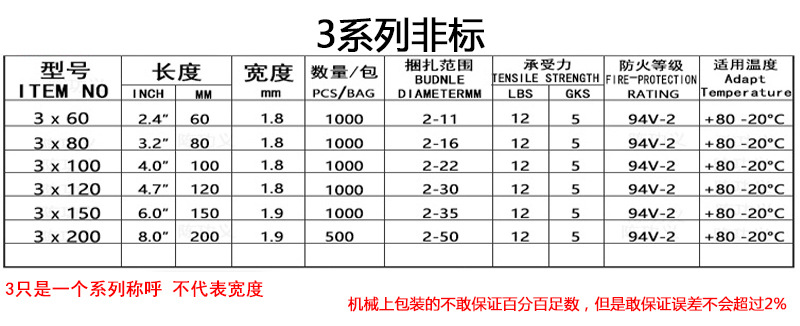 | 3*120 non-standard 1.8mm wide 1000 pieces/bag(3*120非标1.8mm宽 1000条/包) | USD $1.02 | 99997 pack available |