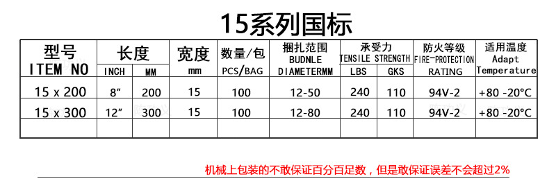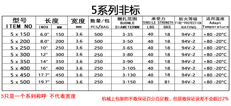 | 5*150 non-standard 3.6mm wide 500 pieces/bag(5*150非标3.6mm宽 500条/包) | USD $1.5 | 99988 pack available |