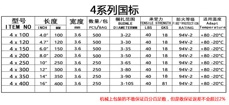| 4*200gb 3.6mm wide 500 pieces/bag(4*200国标3.6mm宽 500条/包) | USD $1.93 | 99979 pack available |