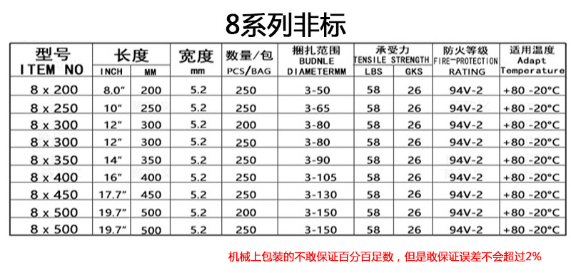 | 8*250 non-standard 5.2mm wide 250 pieces/bag(8*250非标5.2mm宽 250条/包) | USD $1.87 | 99999 pack available |
