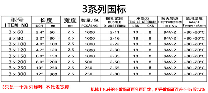 | 3*100gb 2.5mm width 1000 pieces/bag(3*100国标2.5mm宽 1000条/包) | USD $1.15 | 80928 pack available |