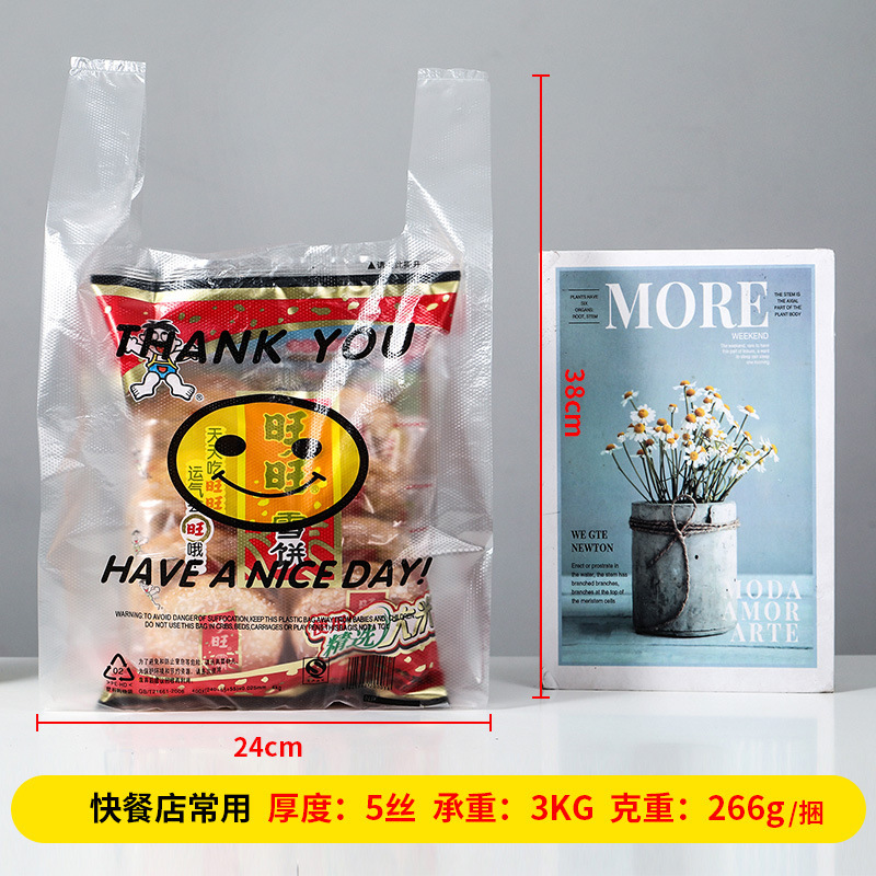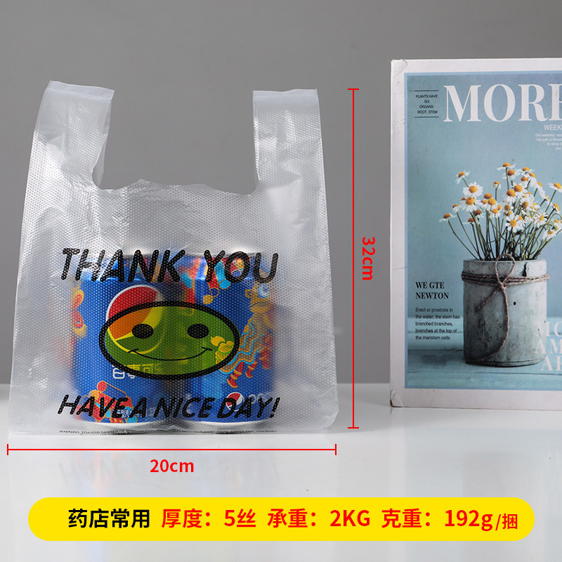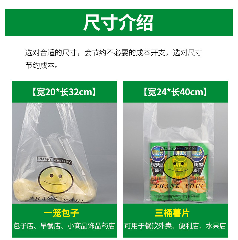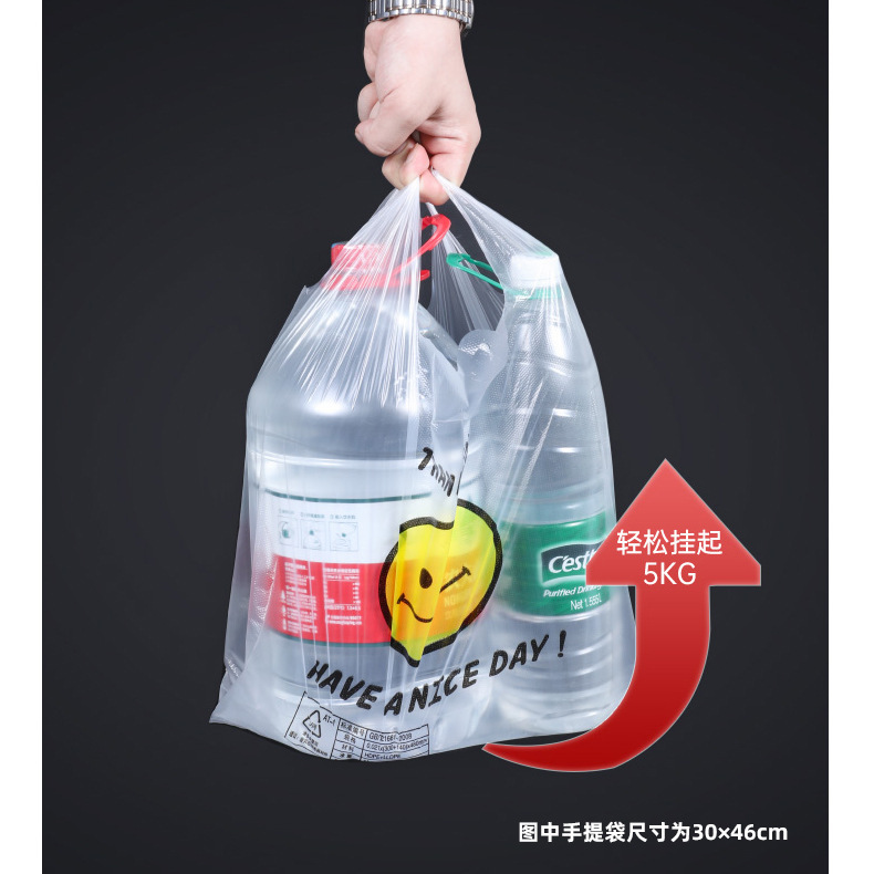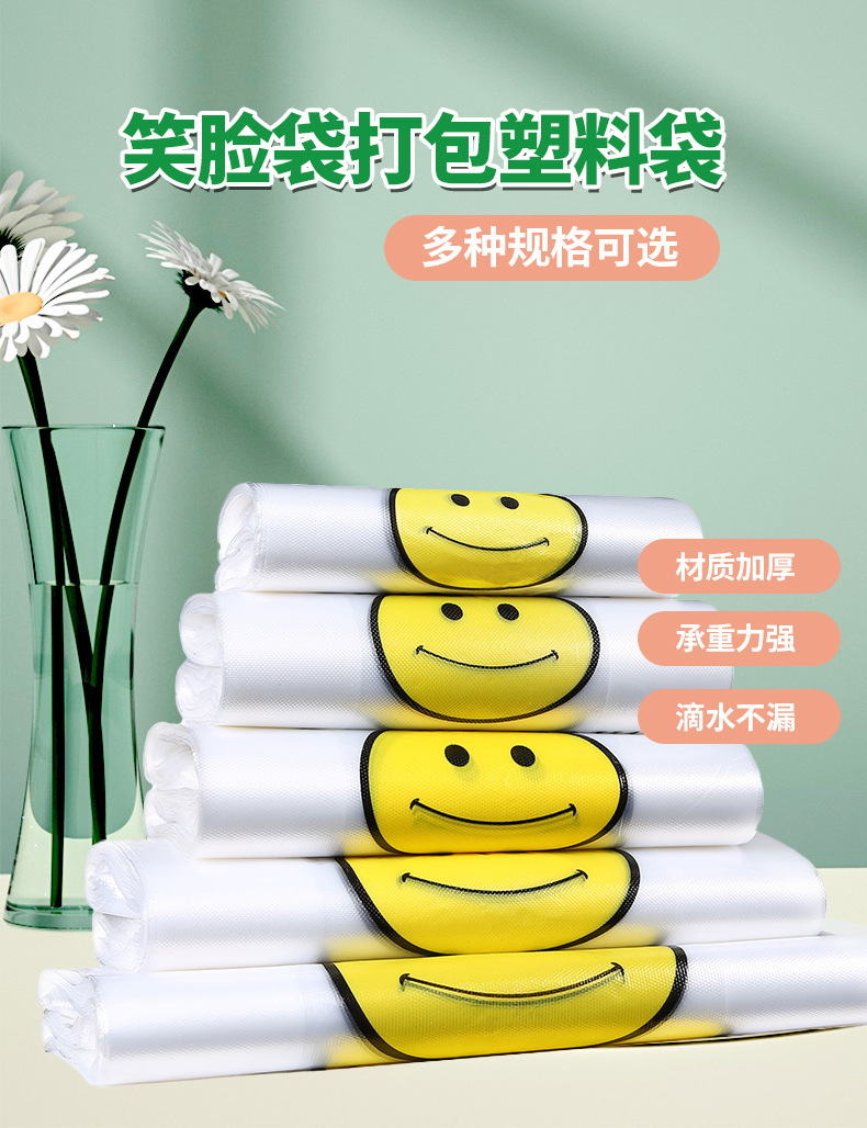 一次性笑脸袋塑料袋透明食品方便袋手提外卖超市塑料袋白色打包袋