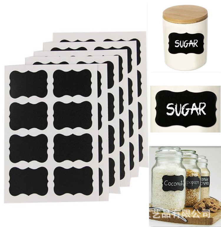 跨境货源异形贴黑板贴标签 pvc防水可擦写8贴一张自粘调味罐标签