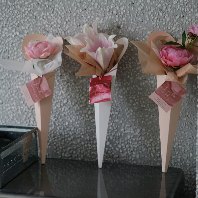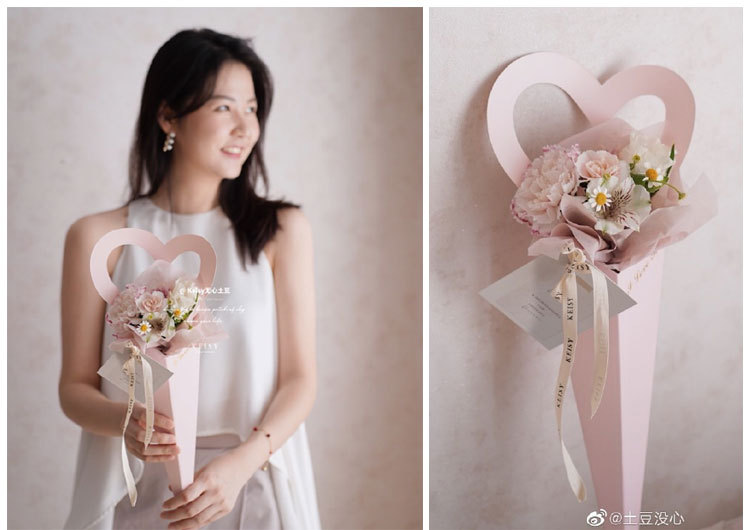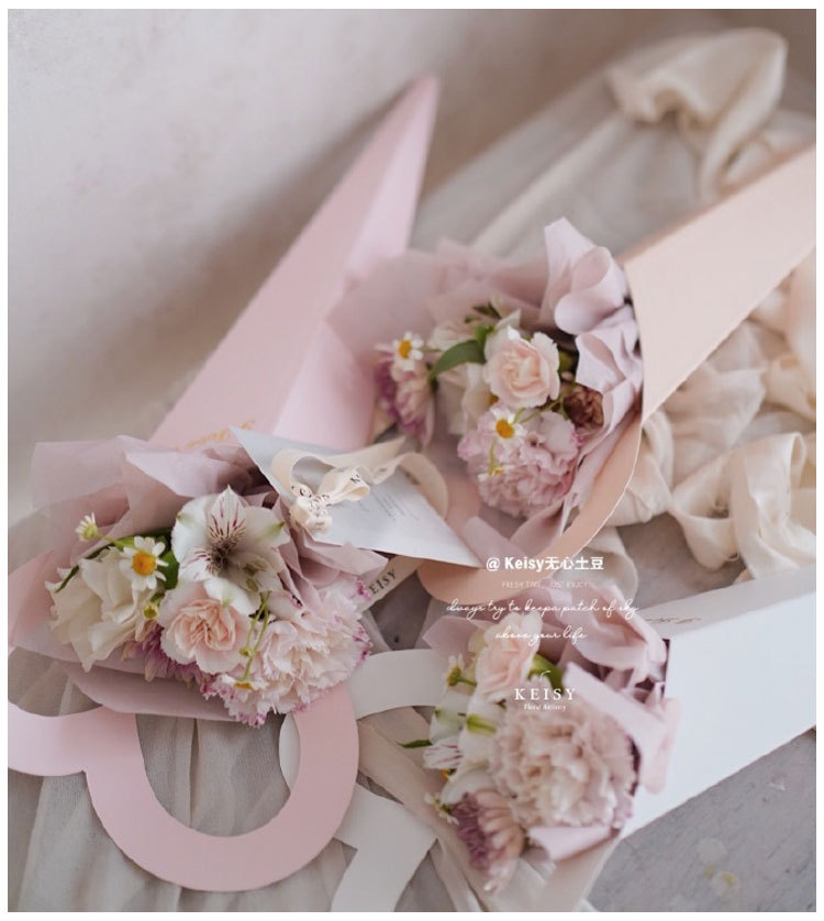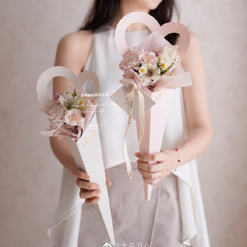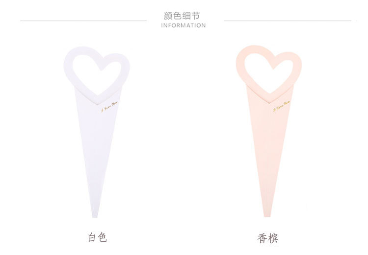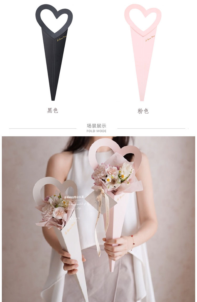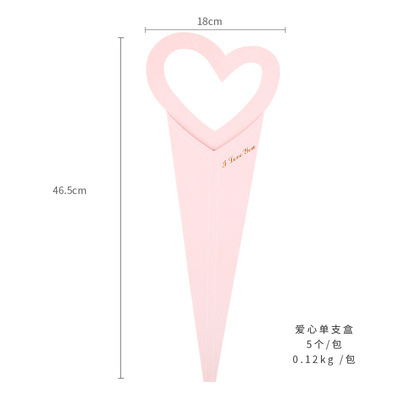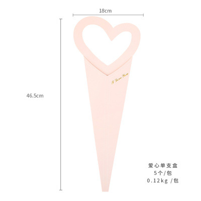 520情人节粉色爱心单支鲜花包装袋 花店鲜花包装材料手拿花束包装