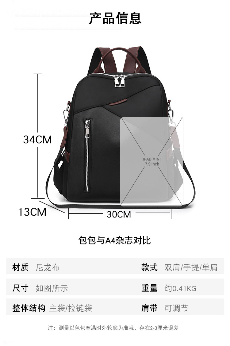 新款女士双肩包时尚潮流简约纯色单肩包休闲轻便旅行背包