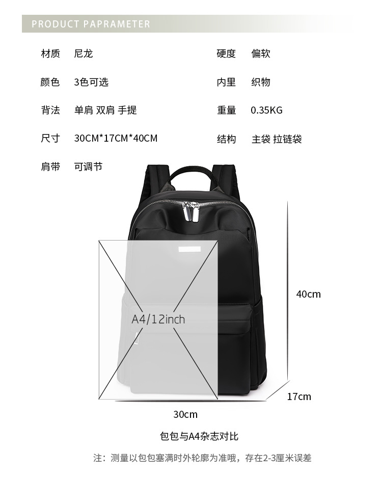 女士双肩包时尚通勤质感小众设计休闲背包轻便简约旅行大学生书包
