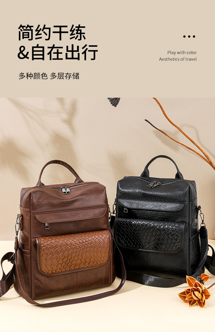 外贸批发双肩包女新款PU背包时尚书包休闲旅行包