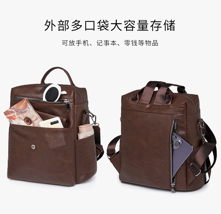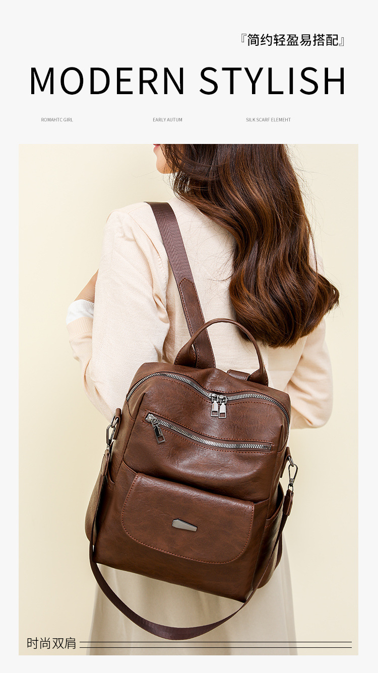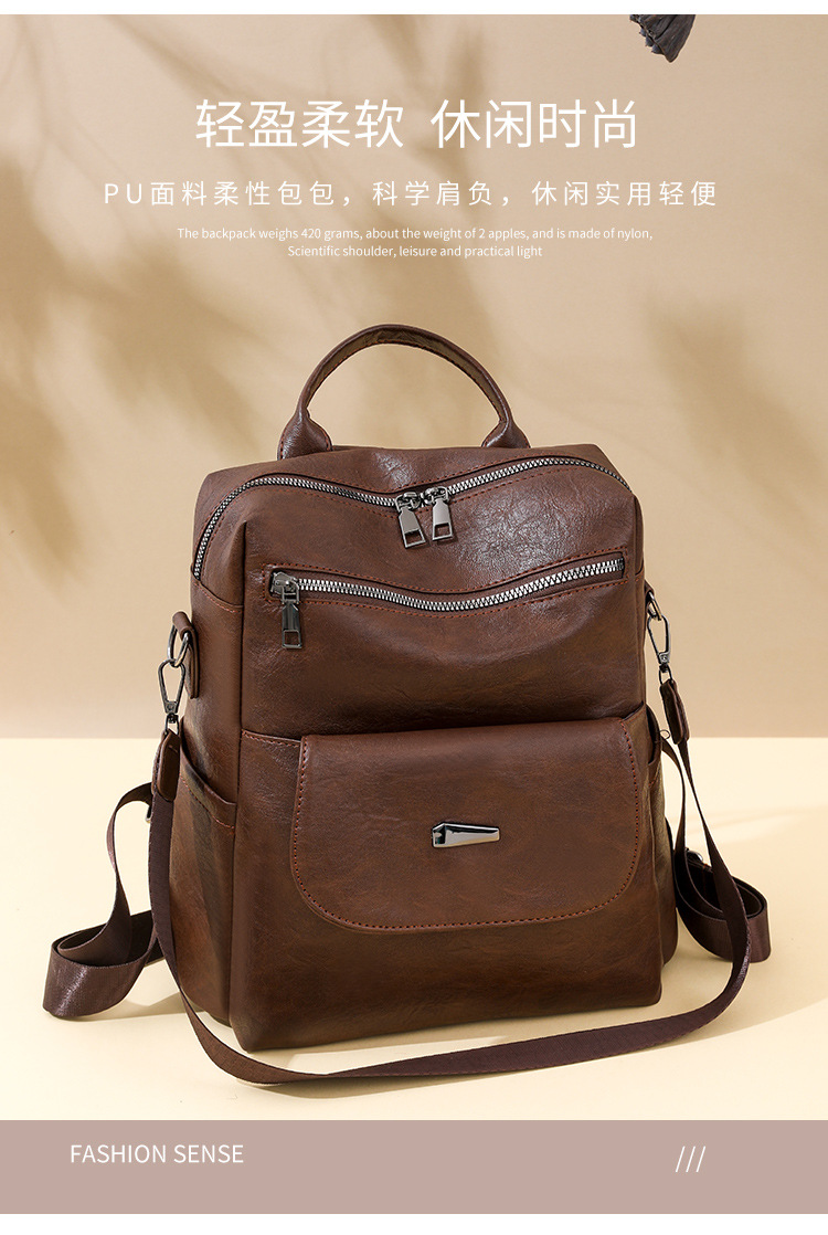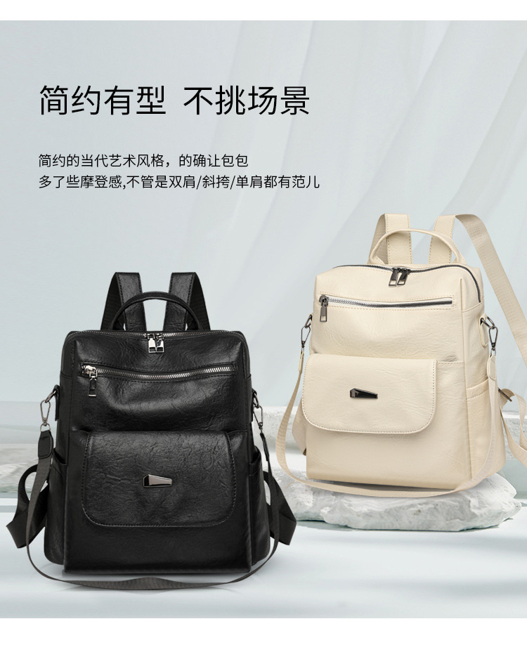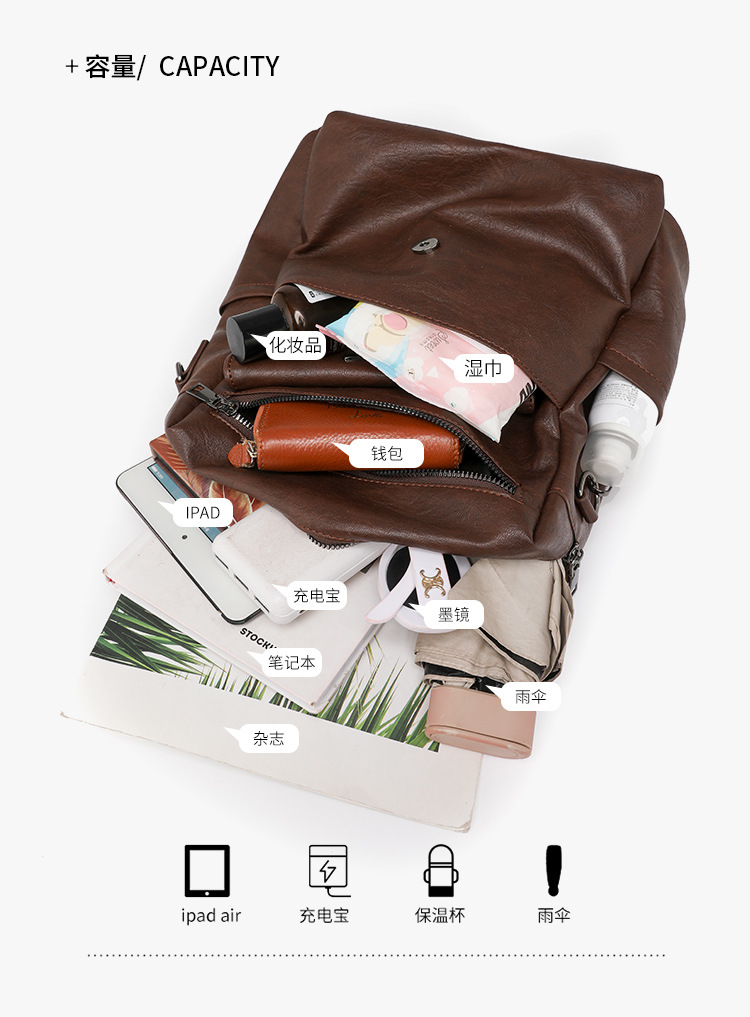 双肩包PU软皮质感女包跨境新款单肩包简约旅行包时尚通勤包