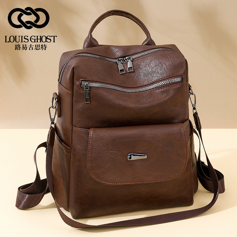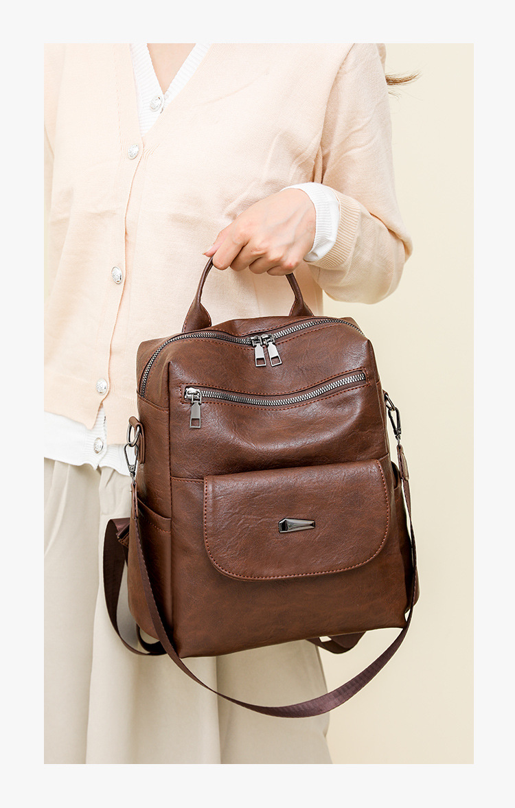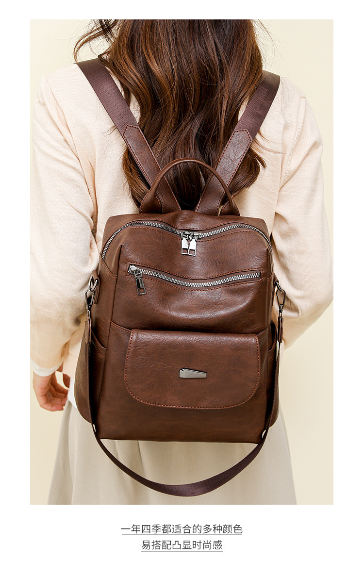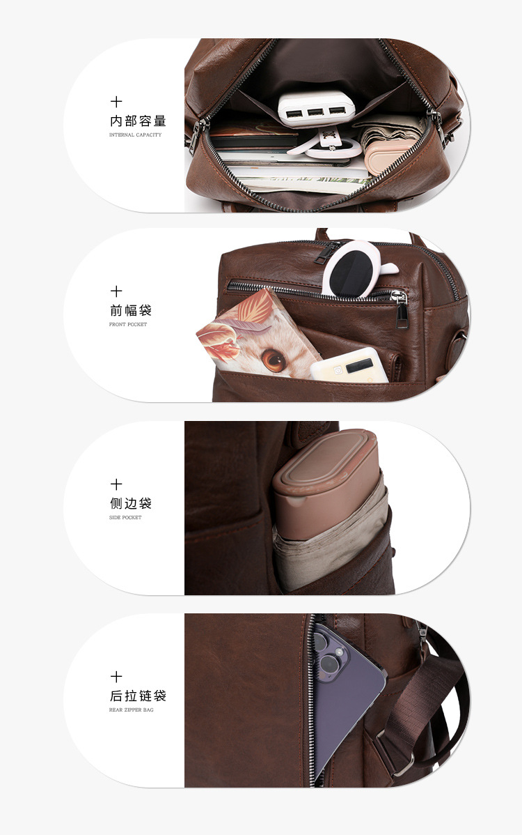 双肩包PU软皮质感女包跨境新款单肩包简约旅行包时尚通勤包
