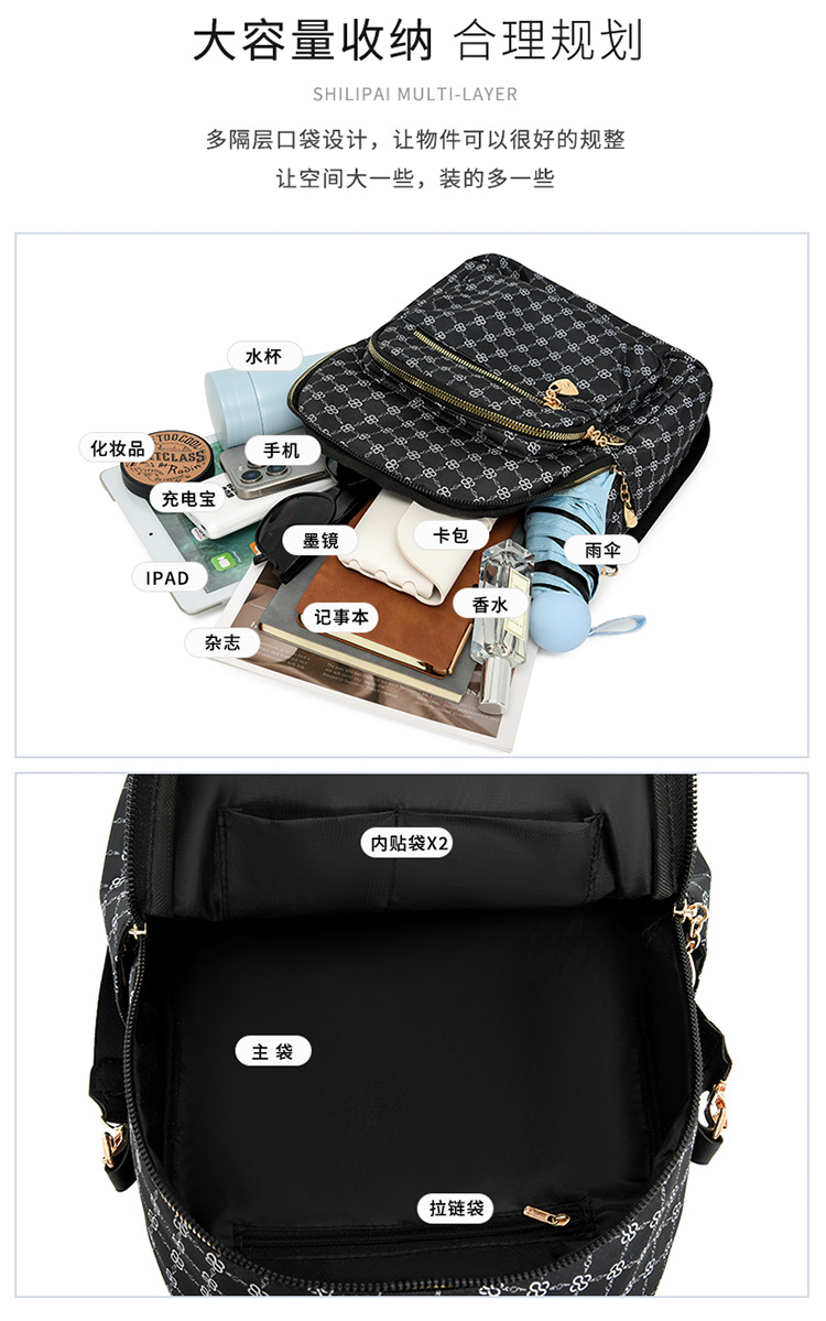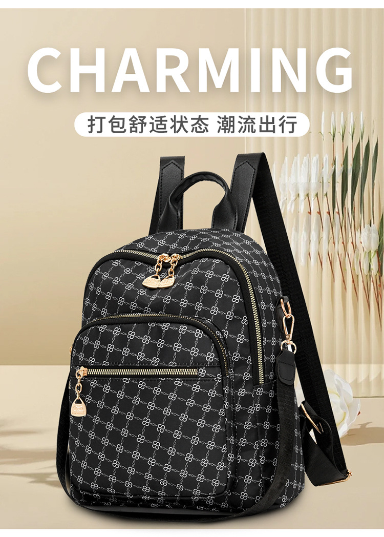 外贸双肩包时尚女新款背包复古印花字母旅行三用背包