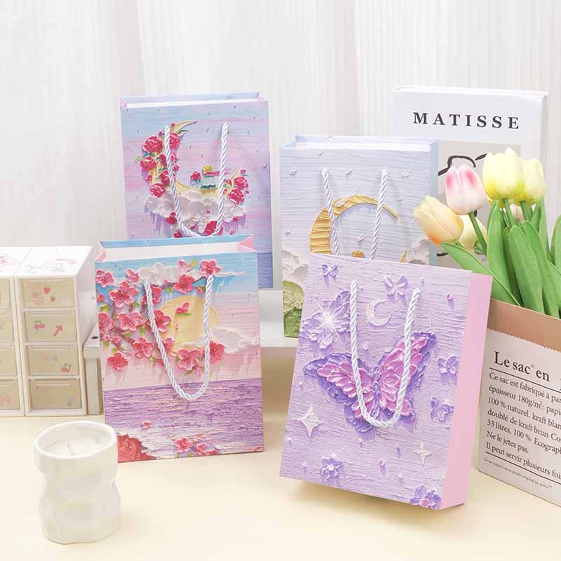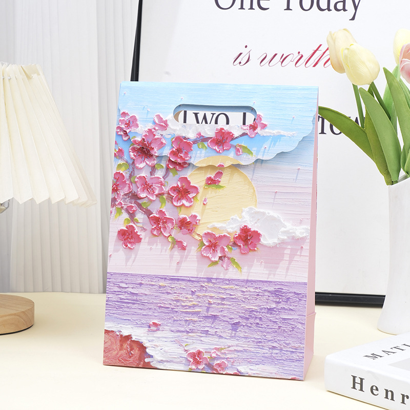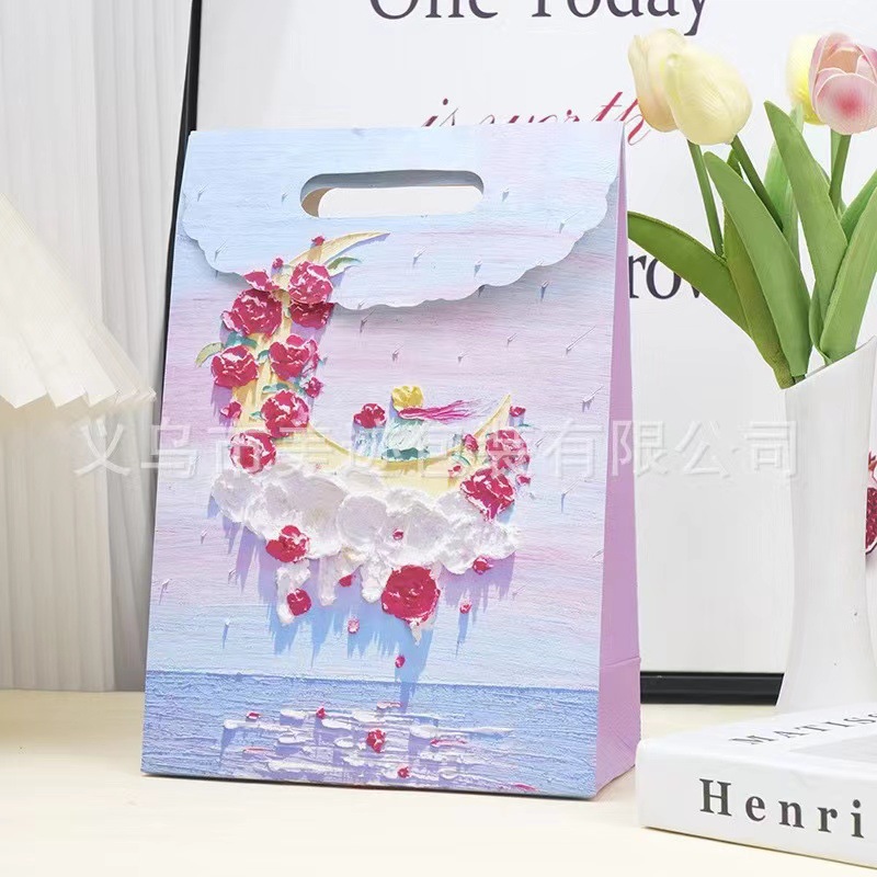 创意油画礼品文艺手提袋节日精美生日花束情人节伴手礼物纸袋子