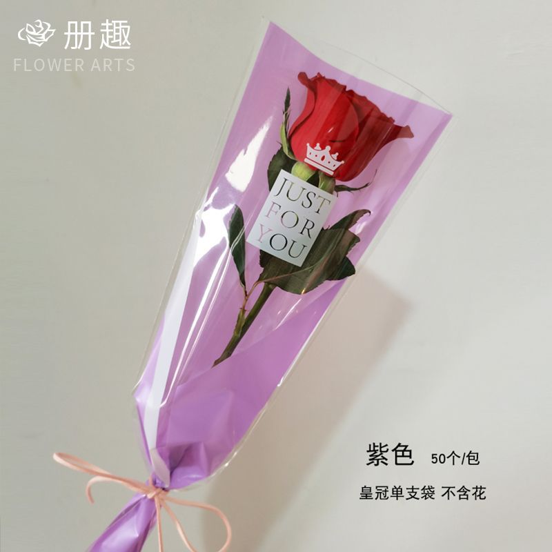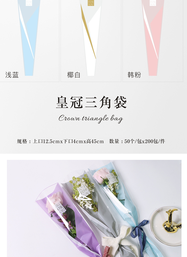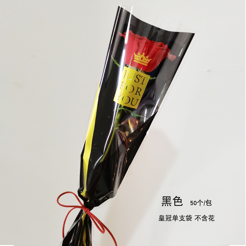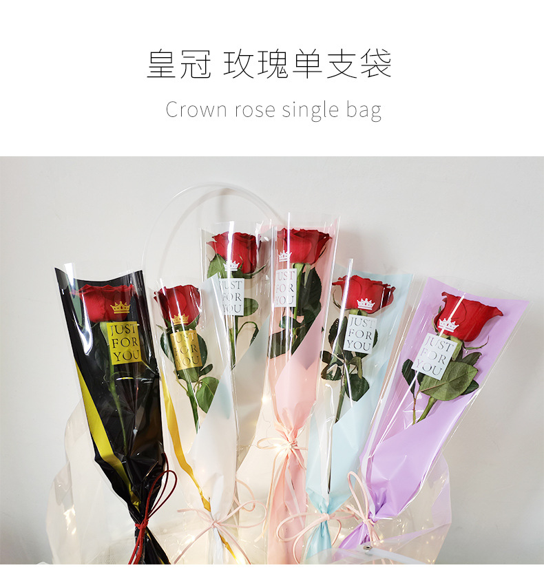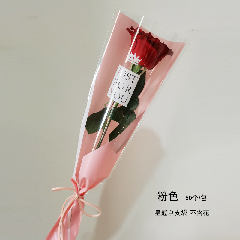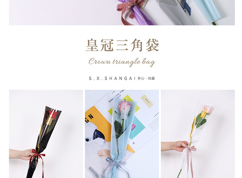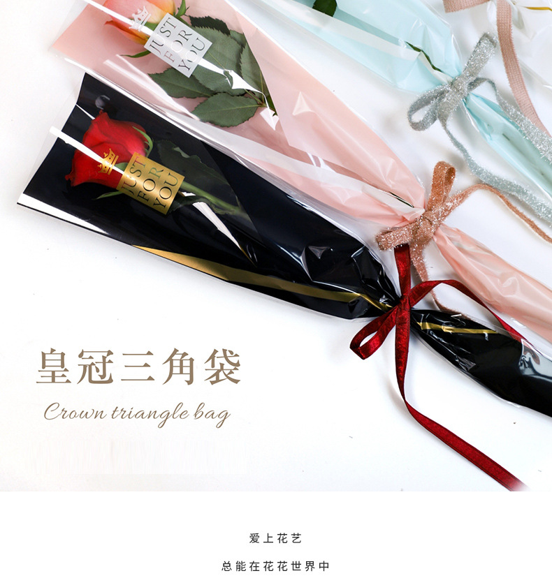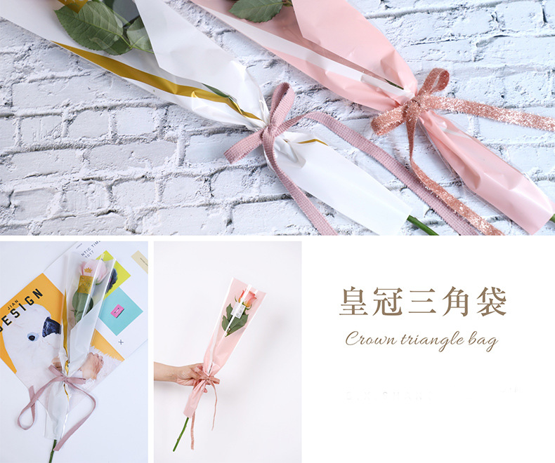 新款皇冠三角单支玫瑰花包装袋单支袋玫瑰袋哑金线单只袋鲜花包装
