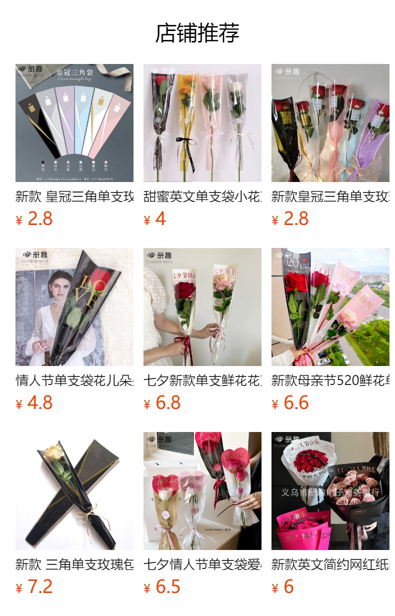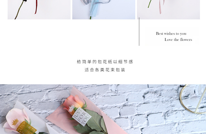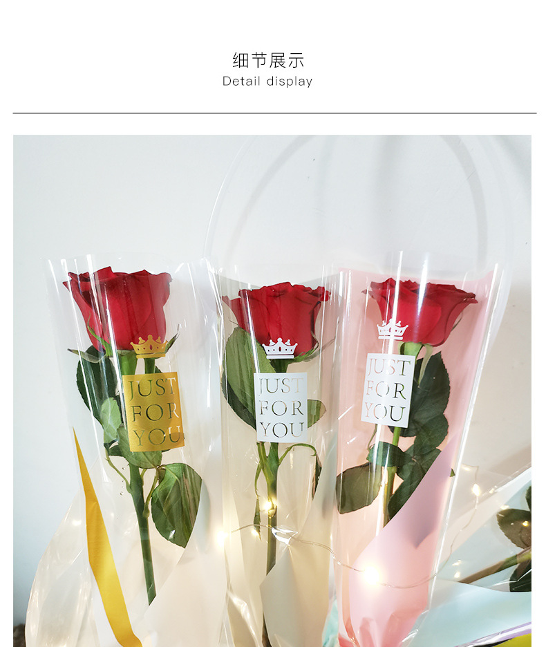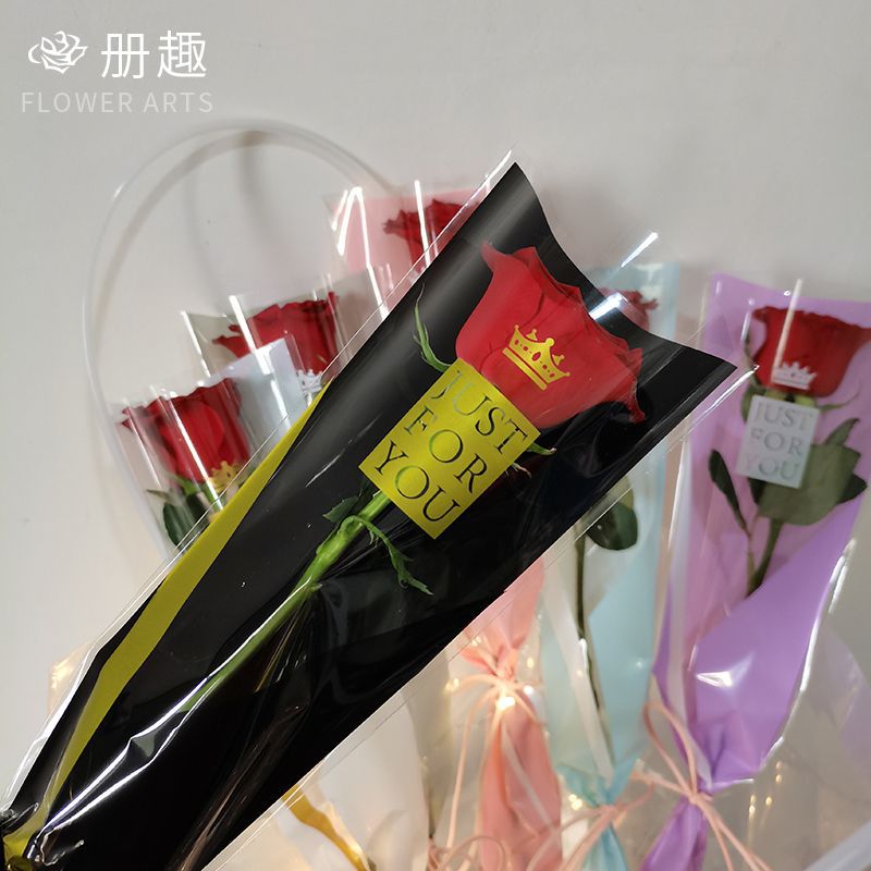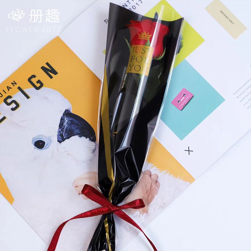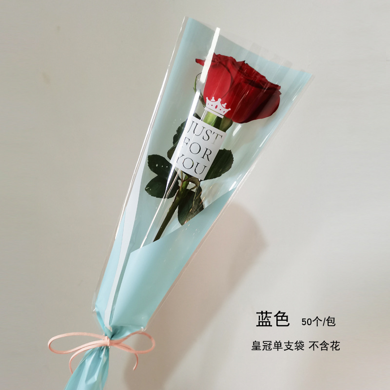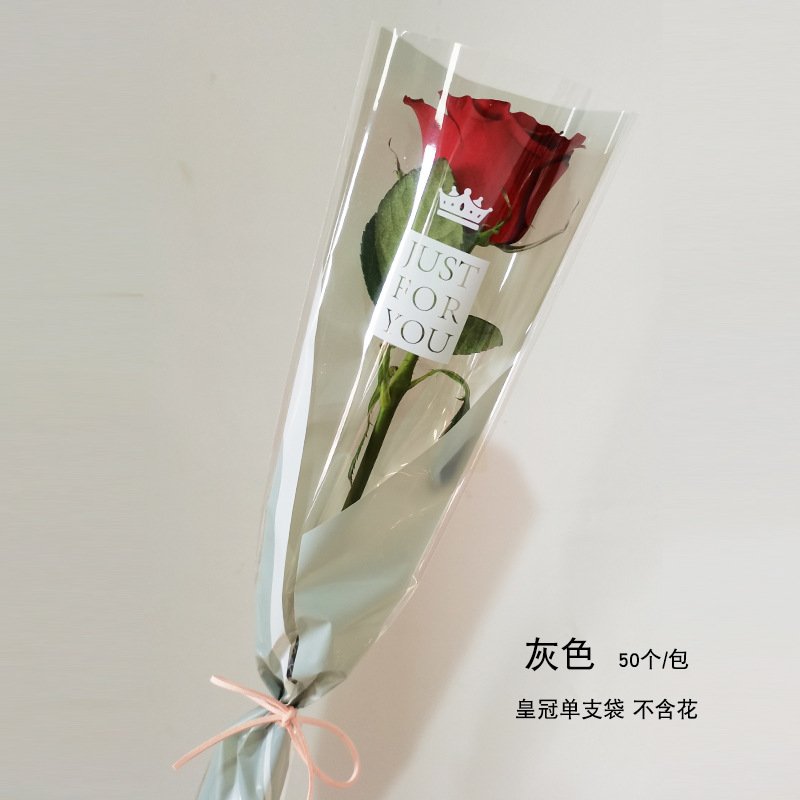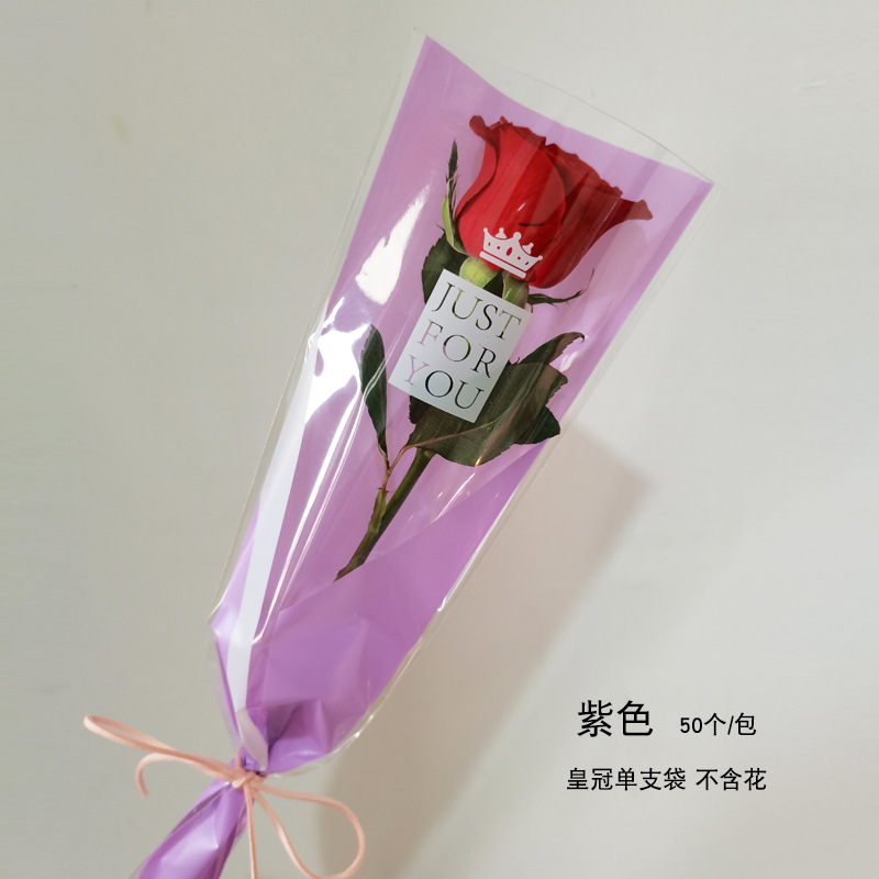 新款皇冠三角单支玫瑰花包装袋单支袋玫瑰袋哑金线单只袋鲜花包装