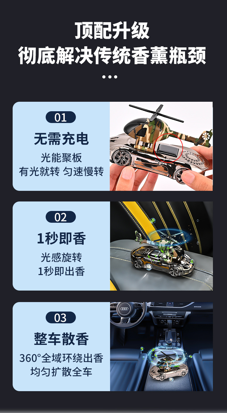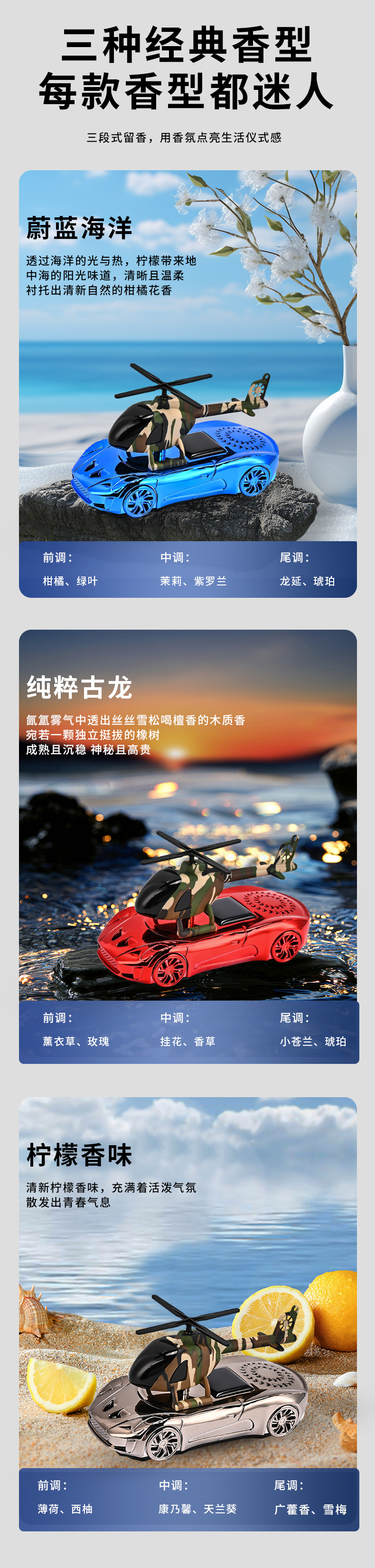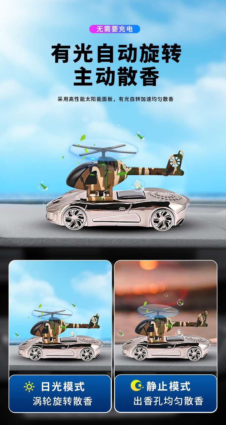 车载香水汽车香薰内除异味持久香氛淡香太阳能直升飞机摆件装饰