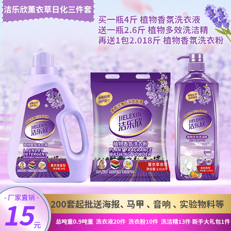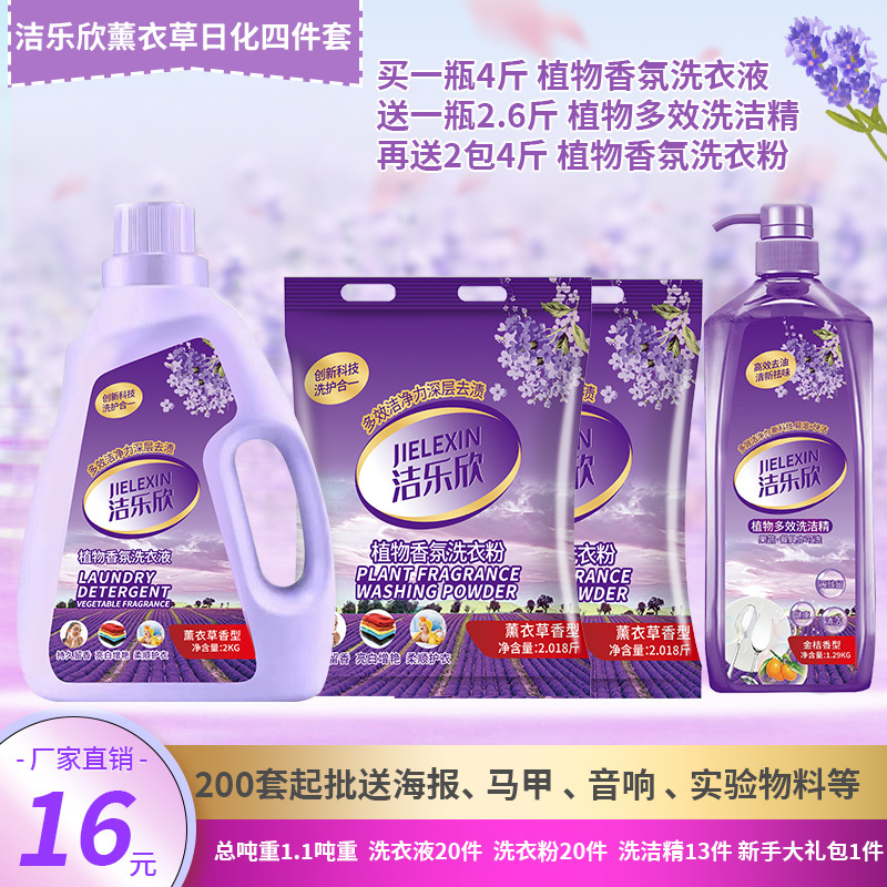 洁乐欣薰衣草日化四件套洗衣液洗衣粉江湖摆地摊赶集批发厂家