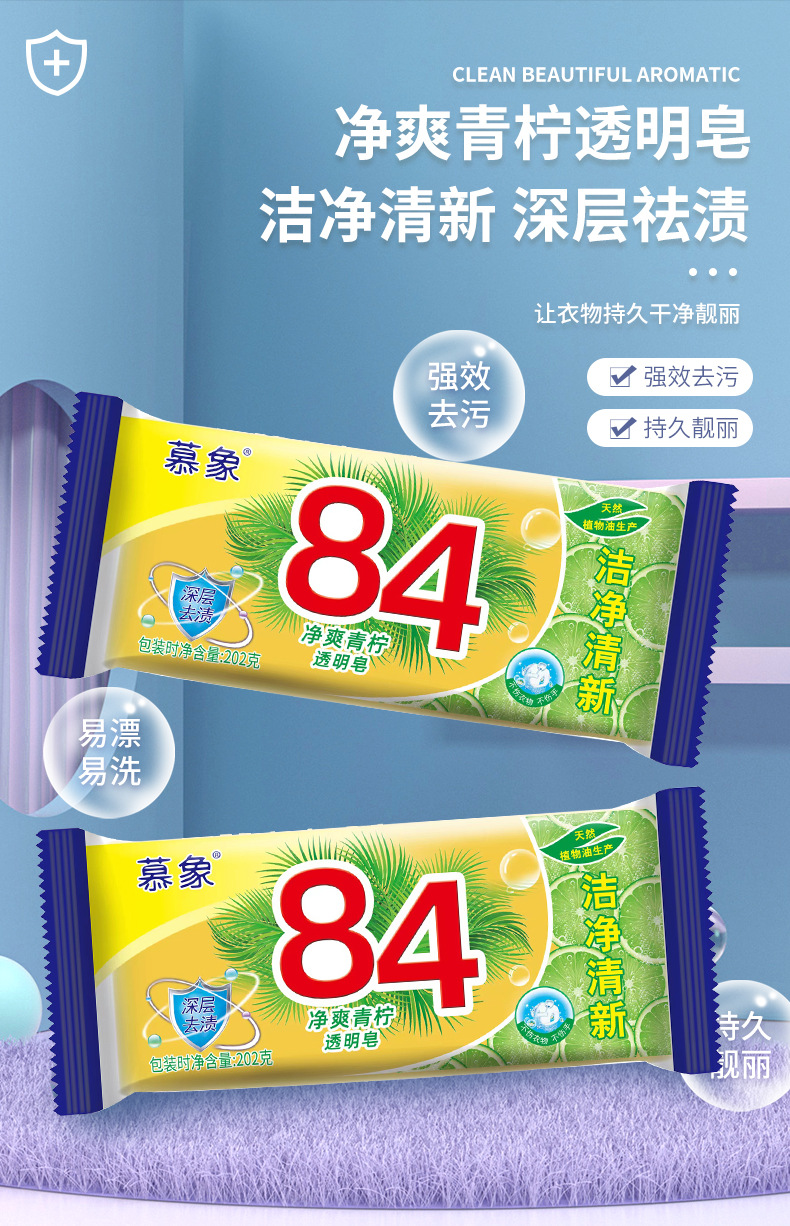 慕象肥皂202g透明皂肥皂香皂去污84洗衣皂衣物透明皂批发厂家
