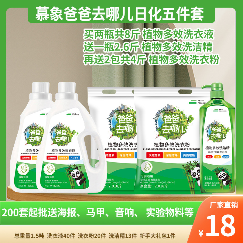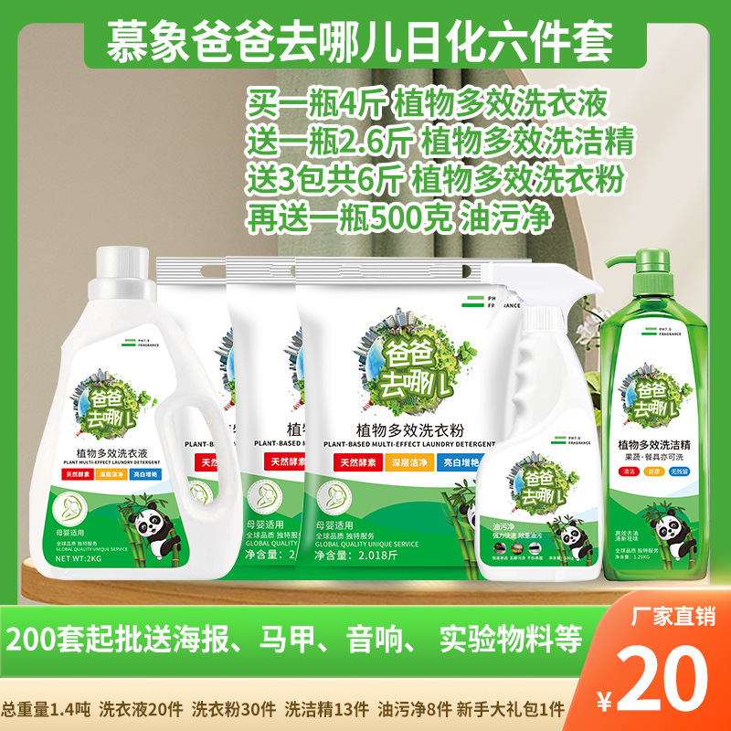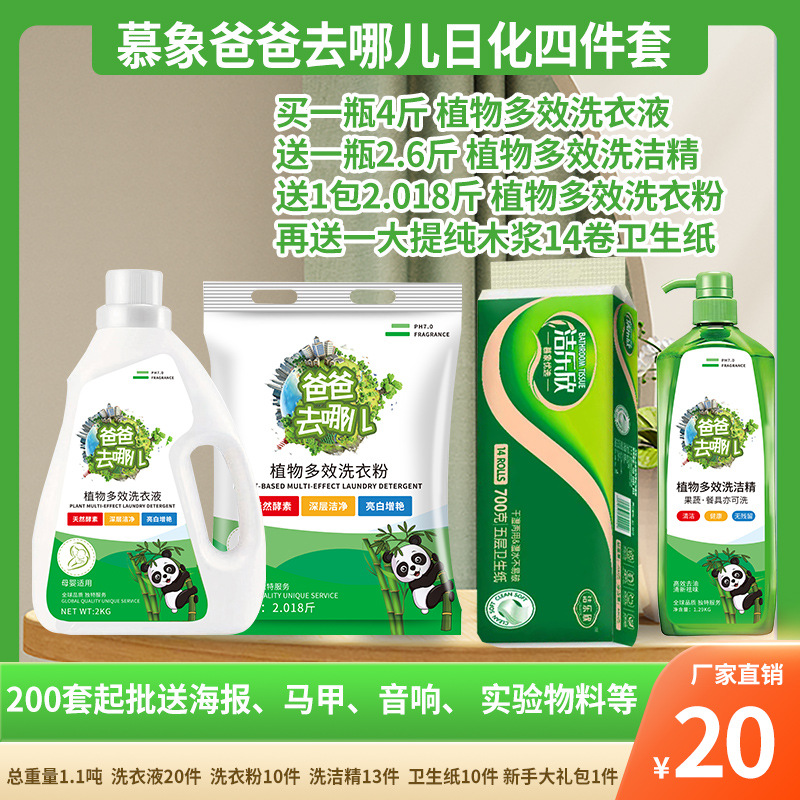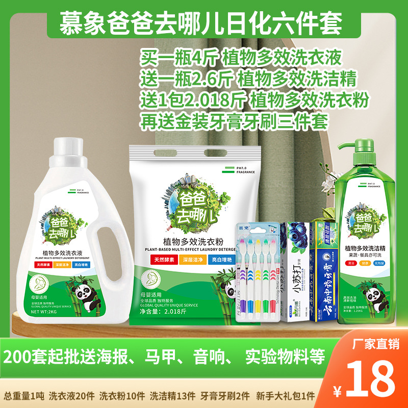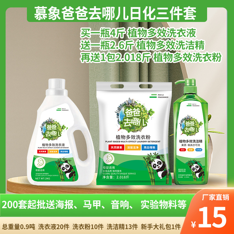 厂家批发慕象爸爸去哪儿洗衣液三件套日化四件套跑江湖地摊赶集