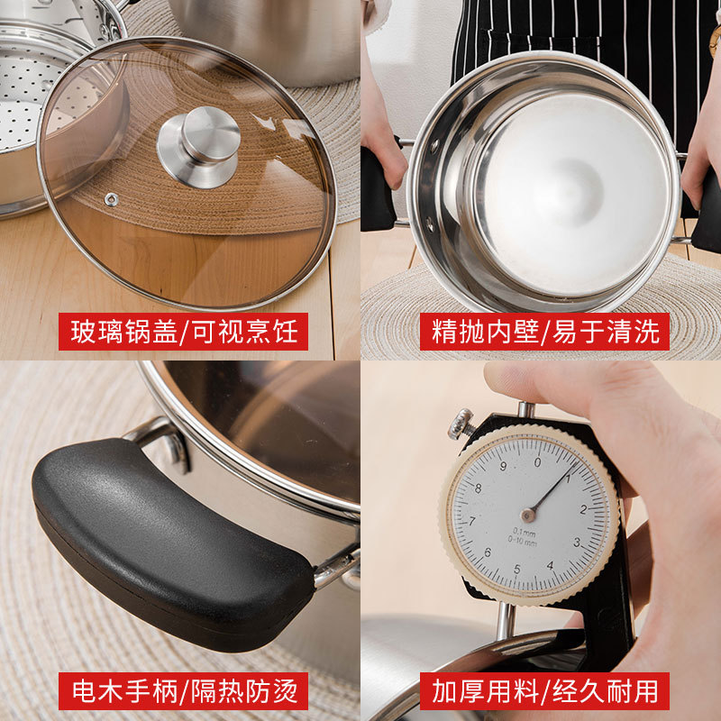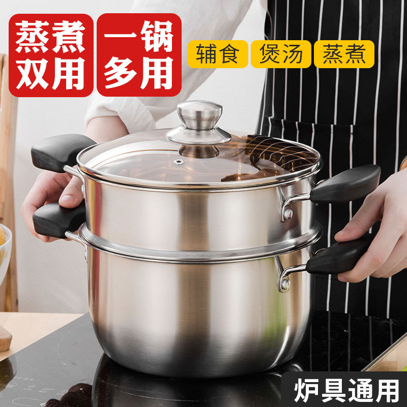 潮州互发跨境汤锅 不锈钢蒸锅多用加厚加双层家用厨房热奶煮面锅