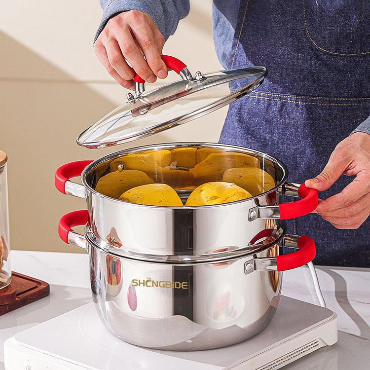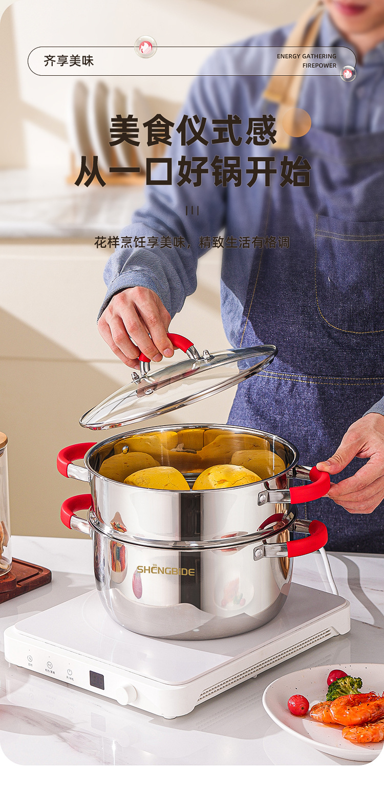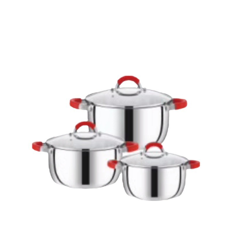 潮州互发跨境炊具不锈钢锅具套装6件套带硅胶手把全套组合