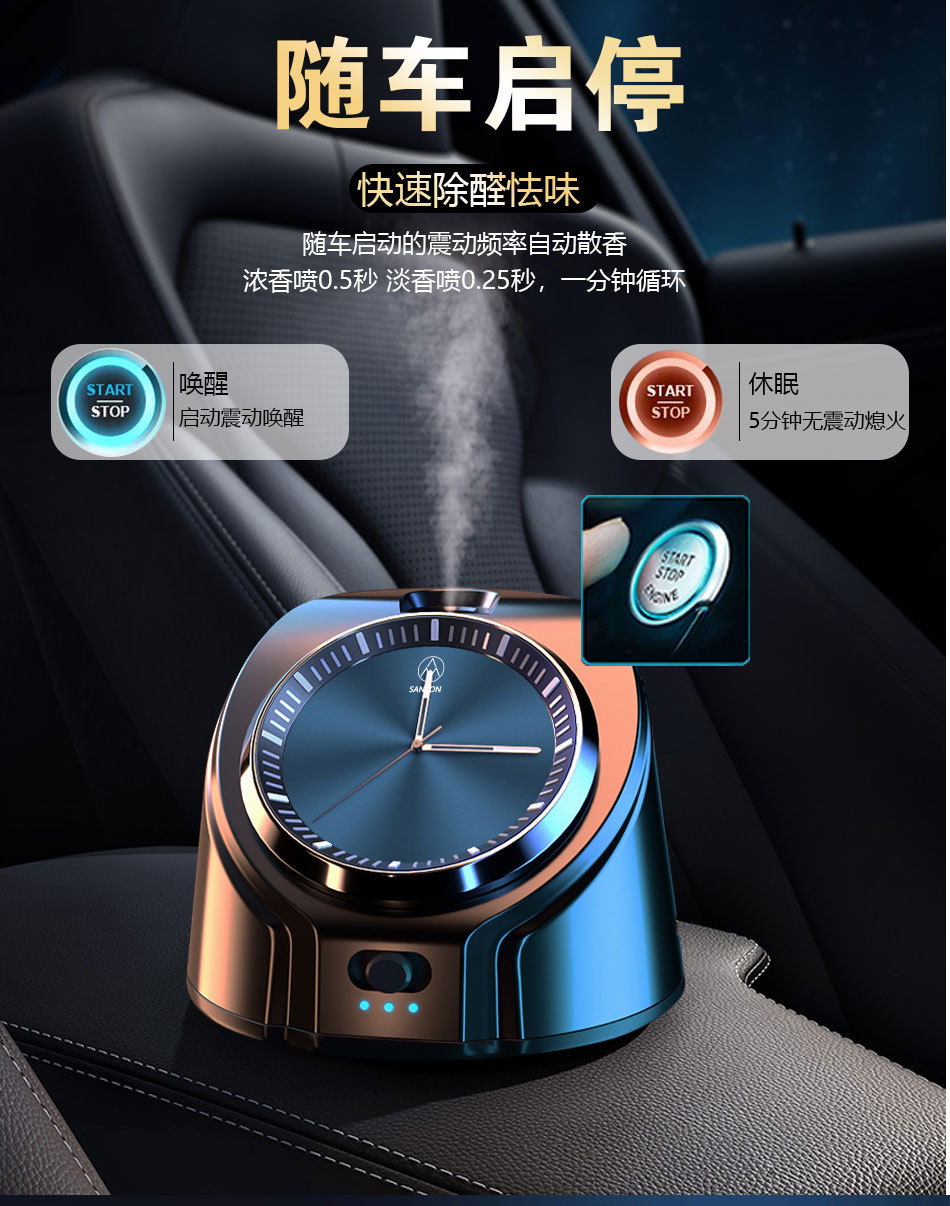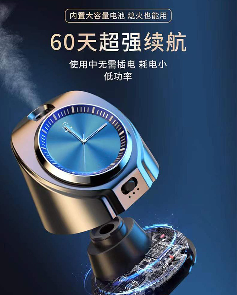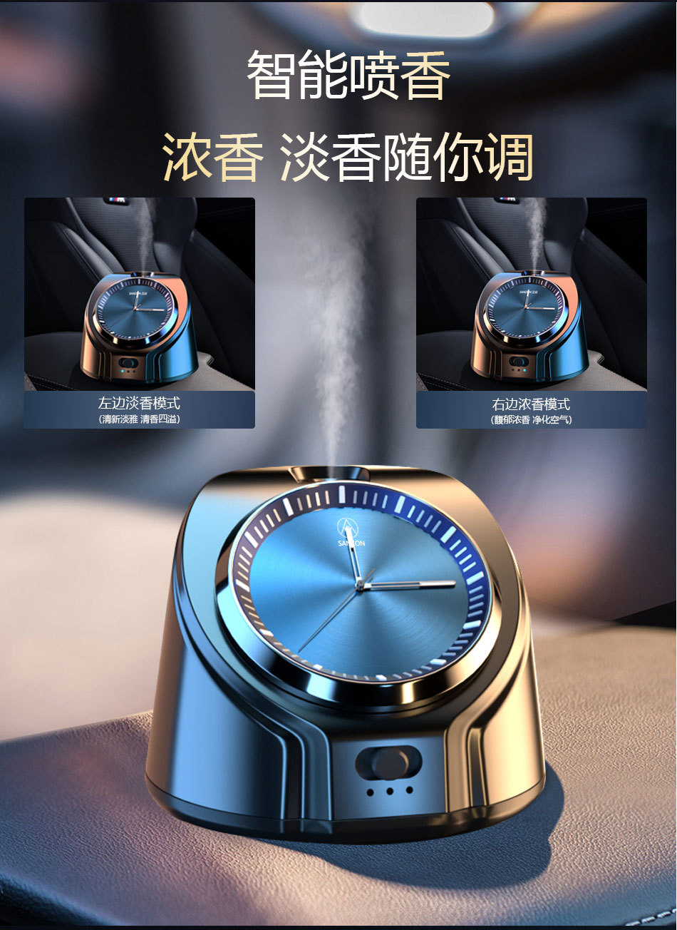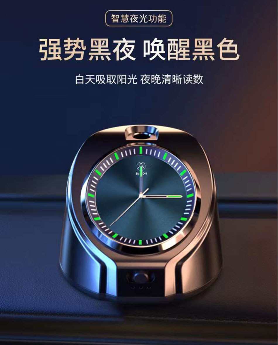 创意时钟表车载香薰机空调仪表台香薰时尚合金表时钟车标香薰机