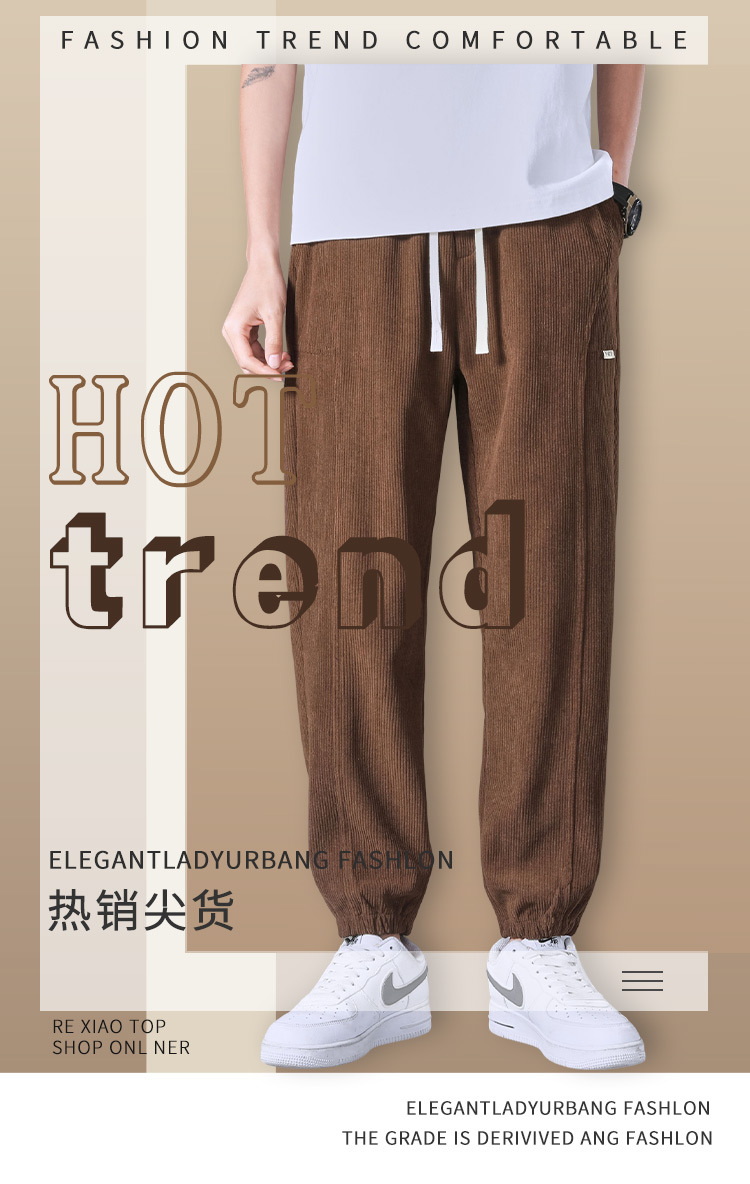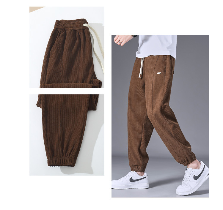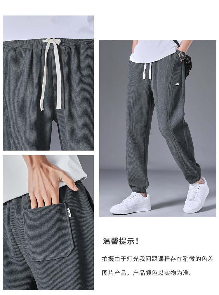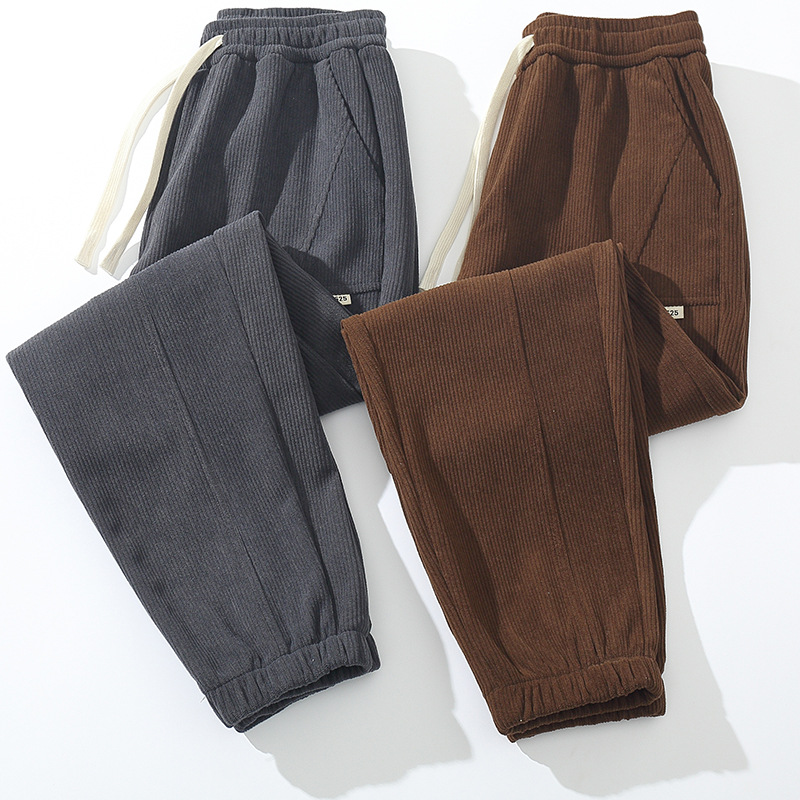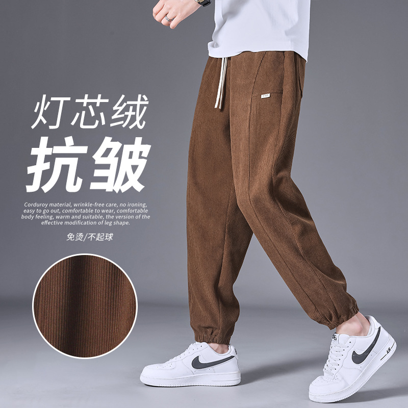 灯芯绒裤子男款秋季宽松垂感运动裤春秋男生卫裤潮牌束脚休闲长裤