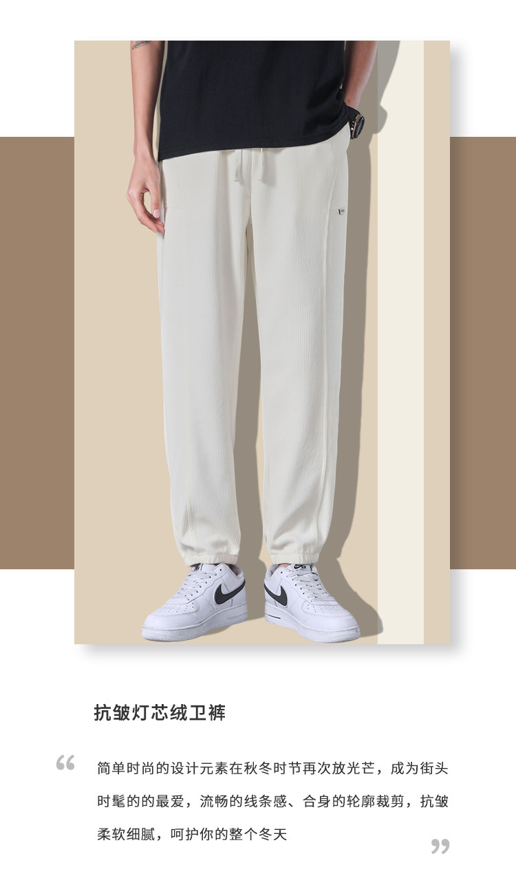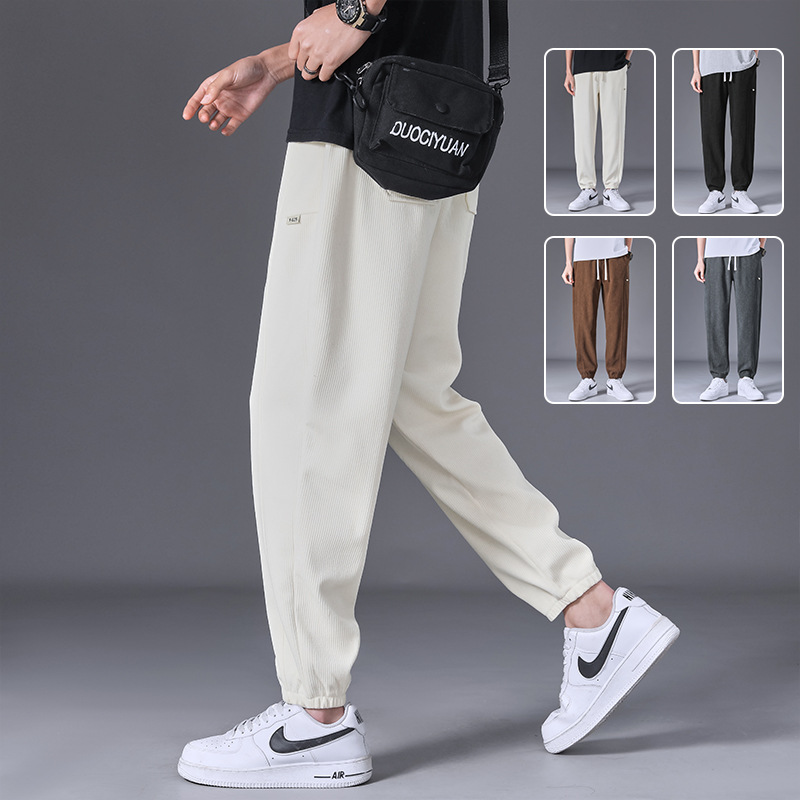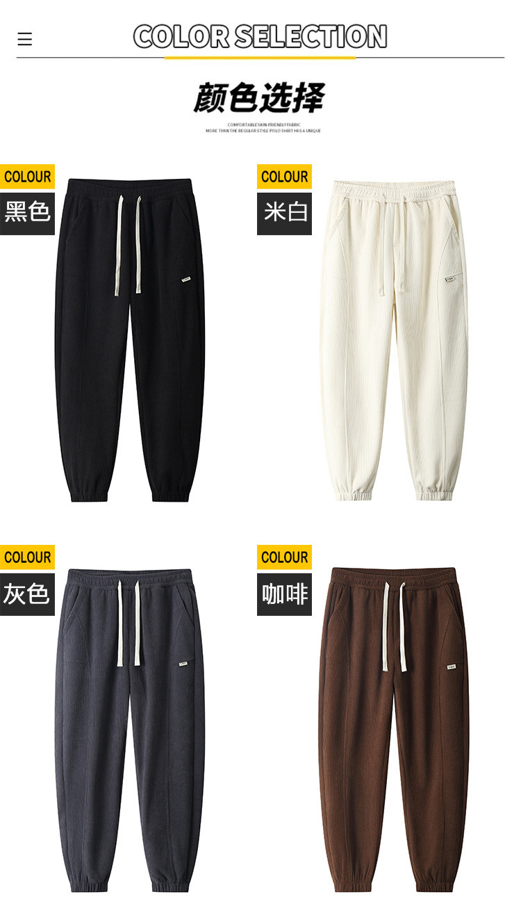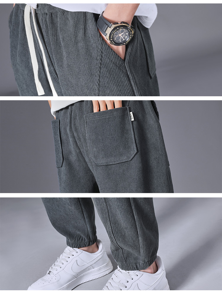 灯芯绒裤子男款秋季宽松垂感运动裤春秋男生卫裤潮牌束脚休闲长裤