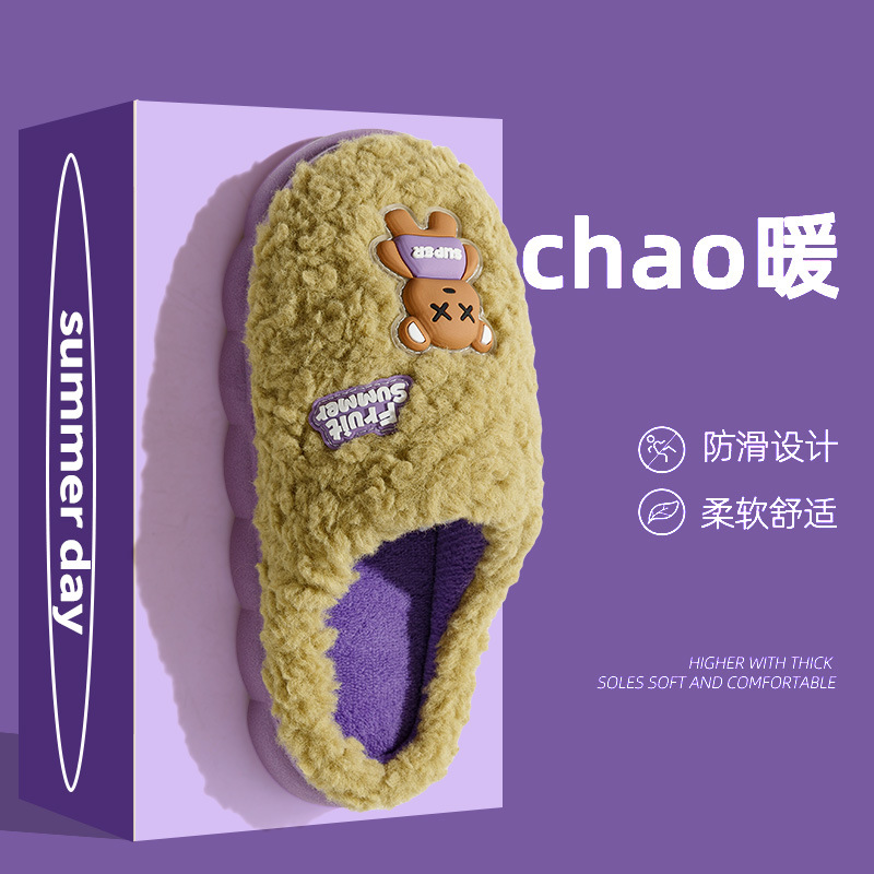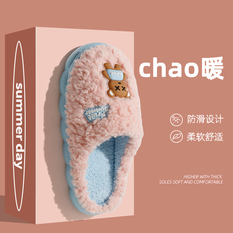 防滑棉拖鞋女秋冬季2024新款家居保暖月子鞋厚底室内家用毛毛拖鞋