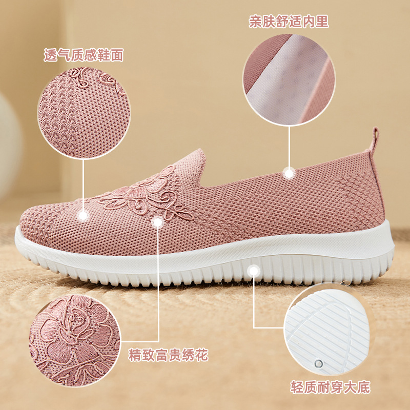 鞋子女2024秋季新款老北京布鞋绣花妈妈鞋浅口一脚蹬女鞋跨境工厂
