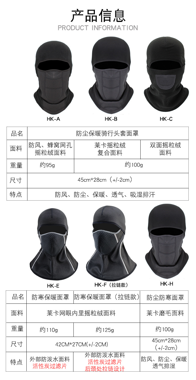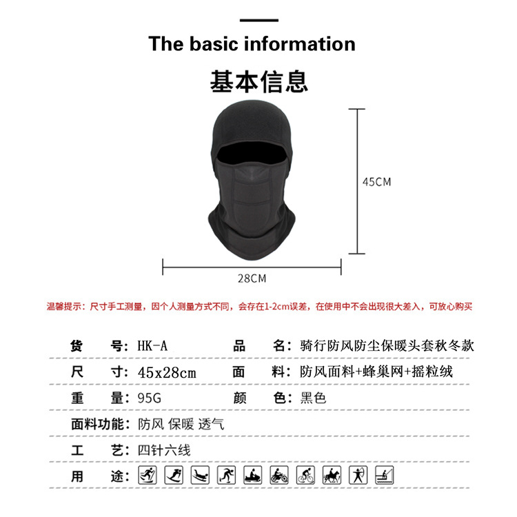 瑞东亚马逊爆款冬季骑行面罩保暖摩托车骑行头套户外防风滑雪面罩