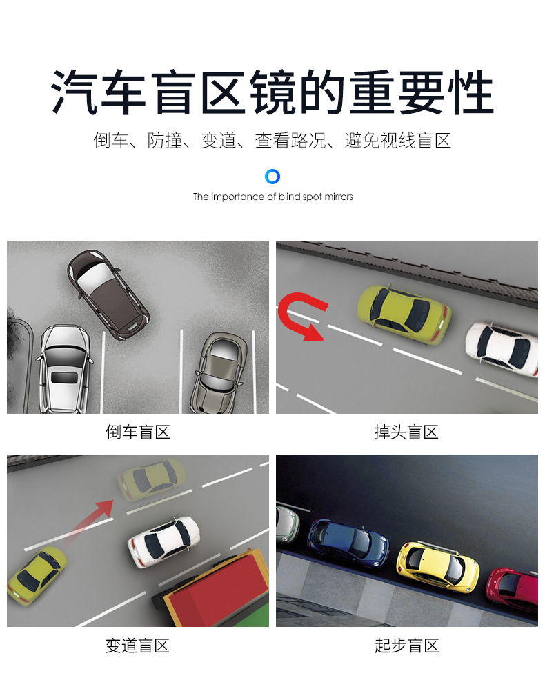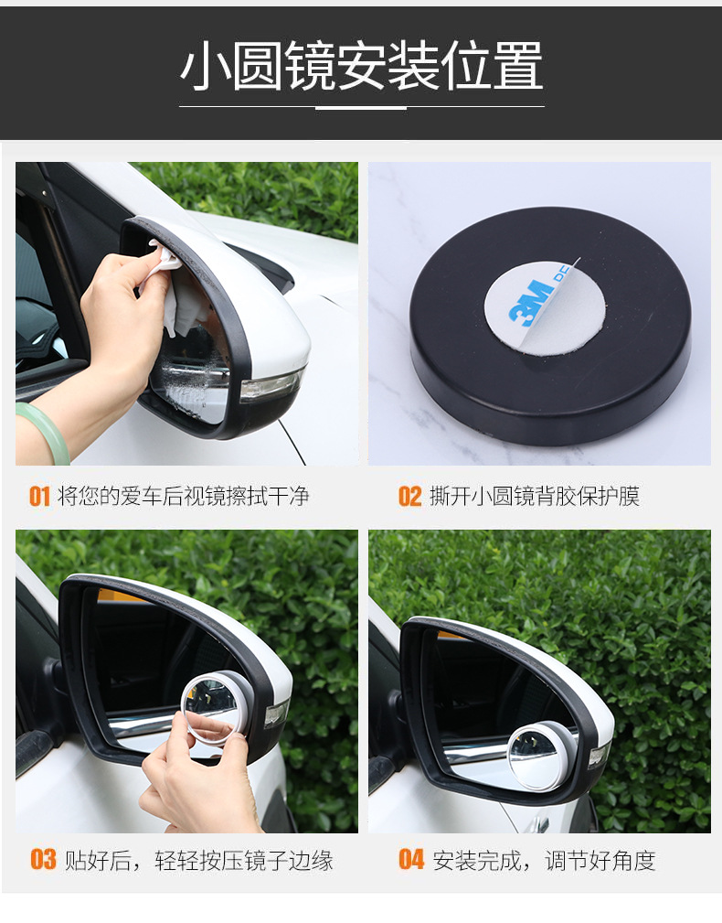汽车倒车镜辅助后视镜可调节圆形小圆镜360度旋转高清盲点镜