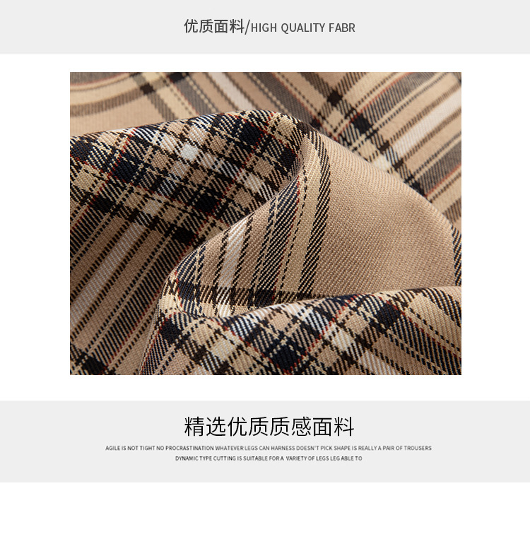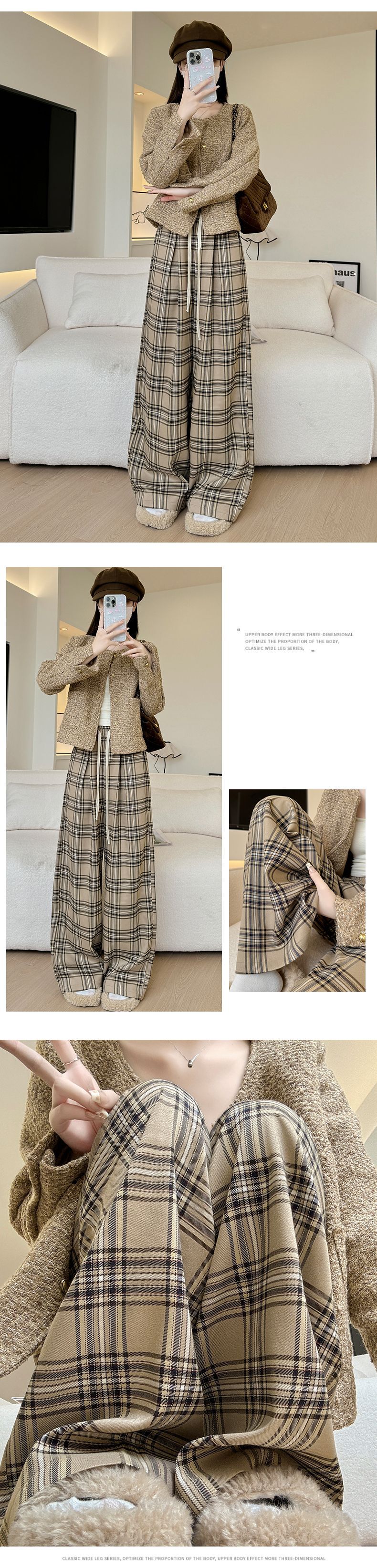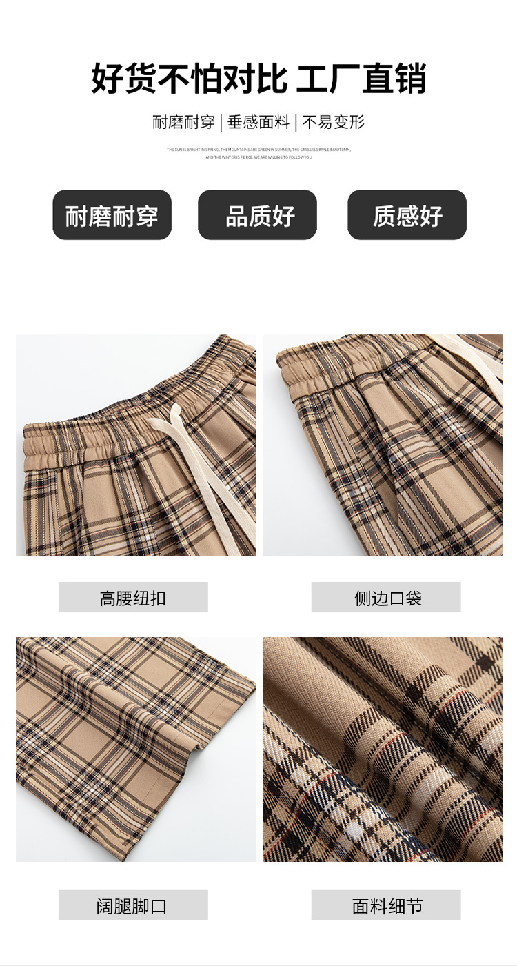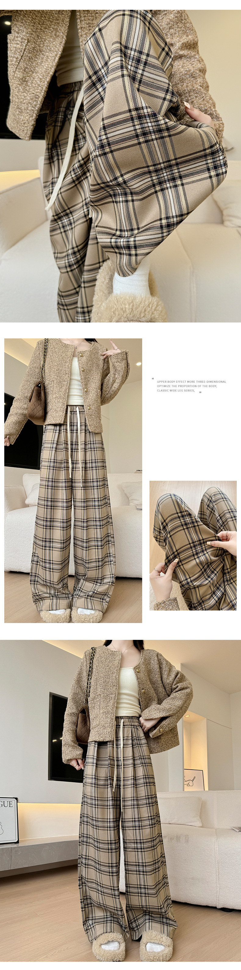 卡其美式格子裤子女秋冬新款高腰垂感宽松直筒裤慵懒风休闲阔腿裤