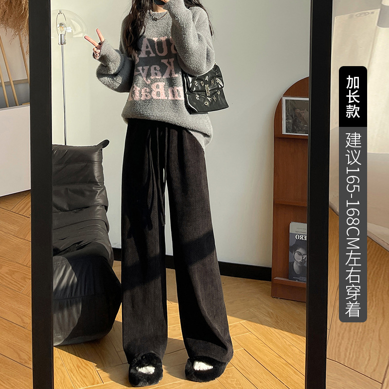 雪尼尔人字纹阔腿裤女装秋季女小个子裤子显瘦宽松休闲高腰直筒裤