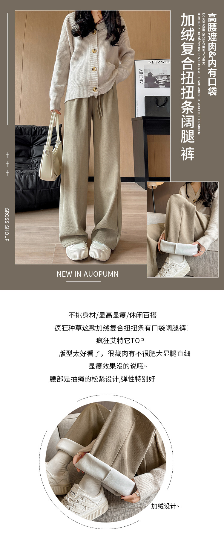 雪尼尔阔腿裤女秋季加绒裤子慵懒宽松显瘦休闲裤高腰女装拖地长裤