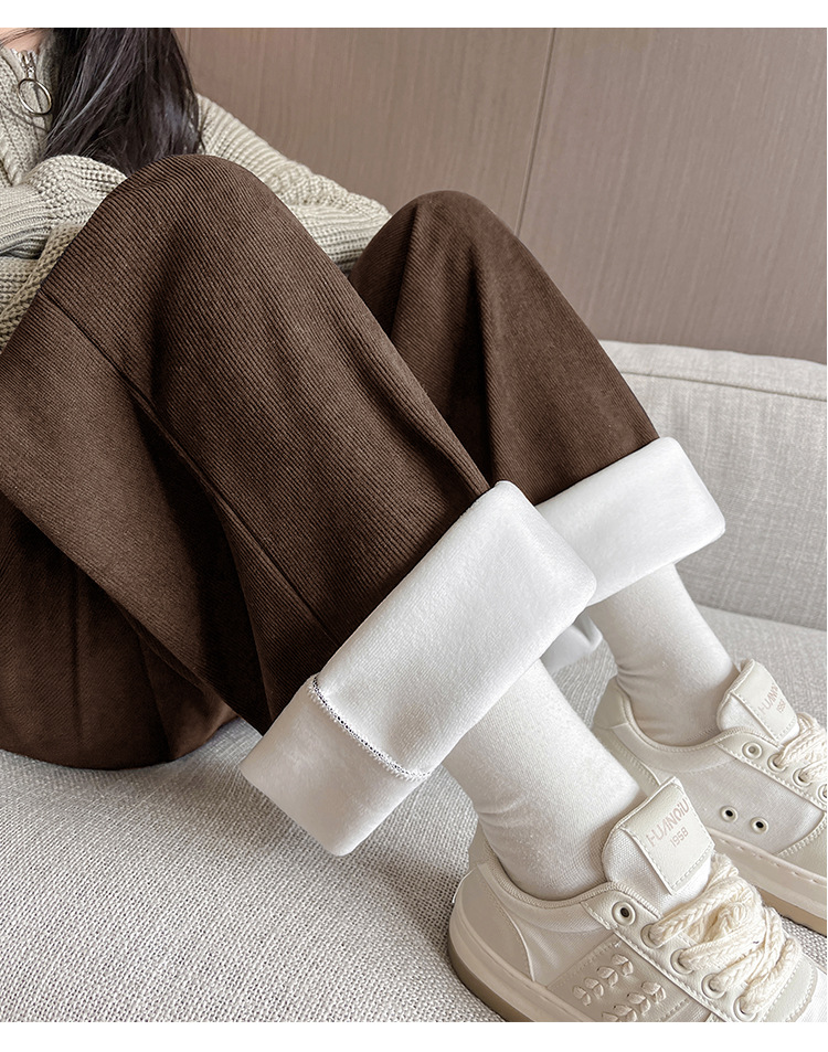 美拉德针织加绒裤子秋冬女新款高腰宽松直筒休闲裤显瘦女装阔腿裤