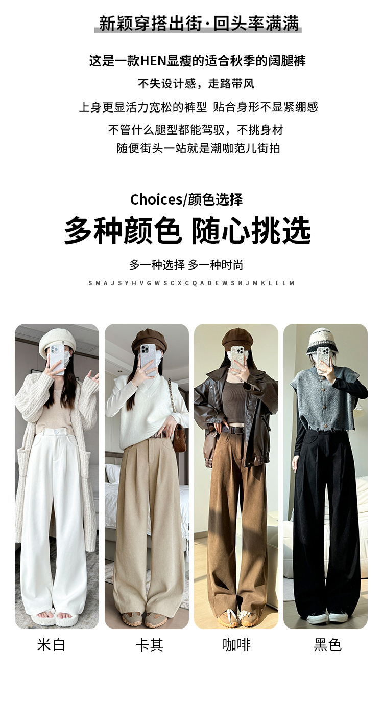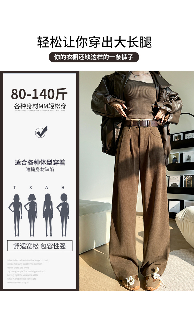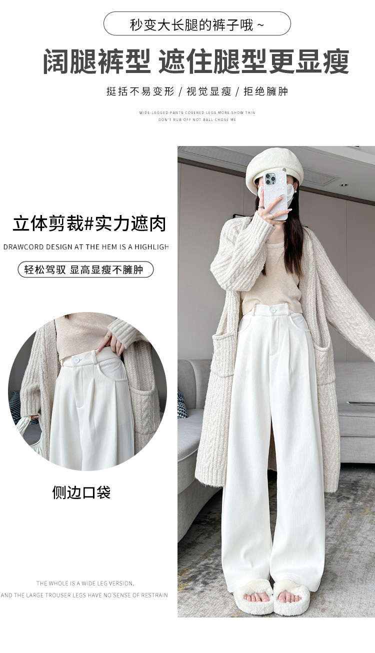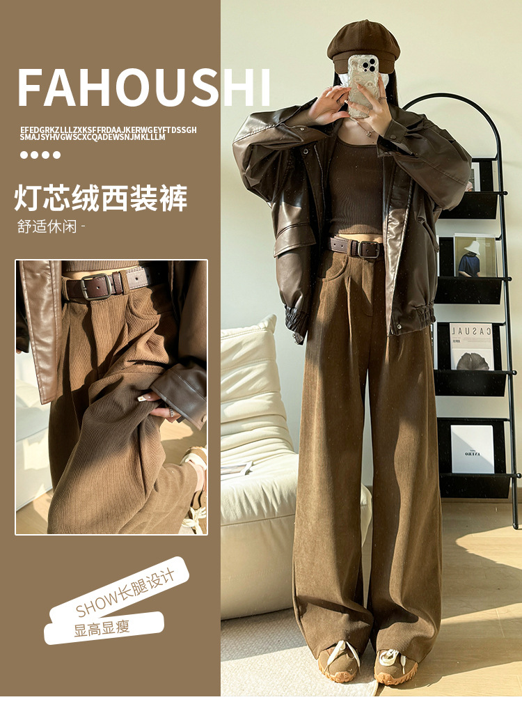 灯芯绒加绒裤子女新款秋冬高级感显瘦阔腿裤直筒休闲慵懒风西装裤
