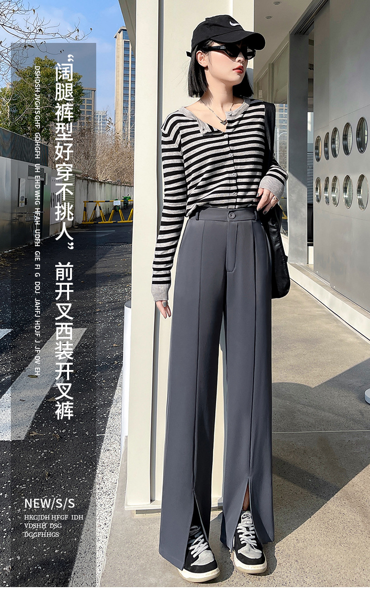 【网文面料】灰色开叉西装裤女裤子春季新款休闲裤女装阔腿裤女裤