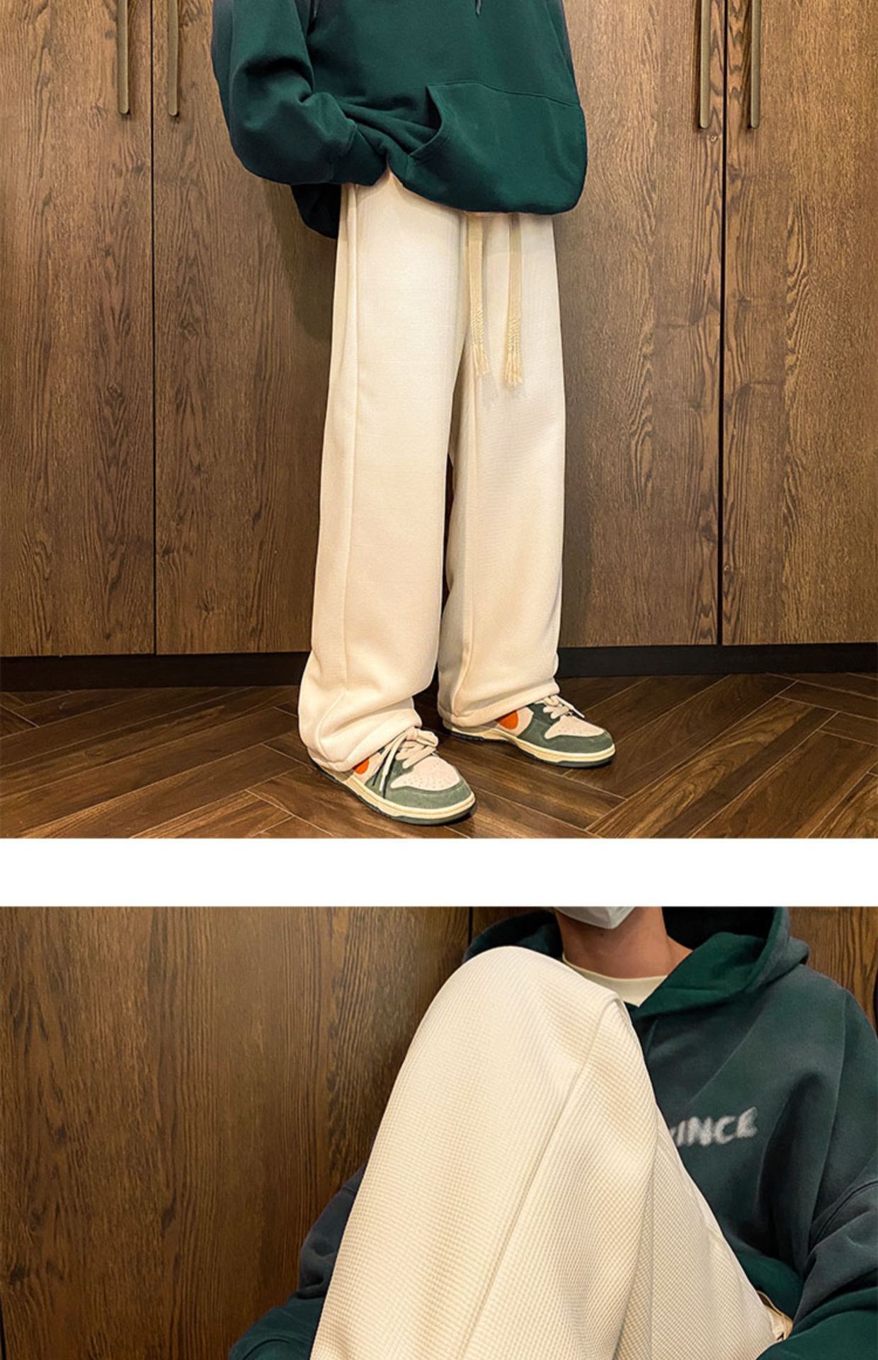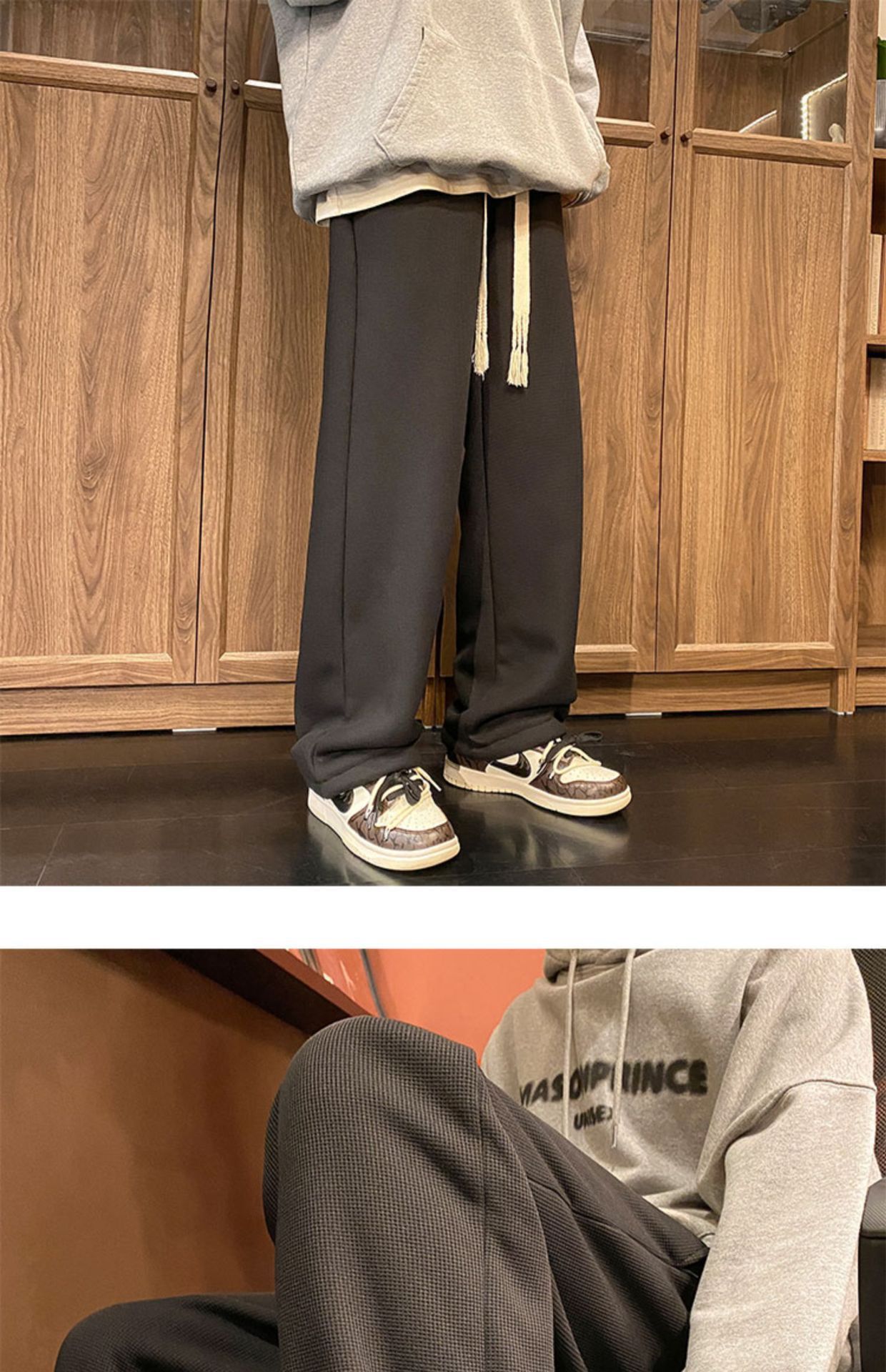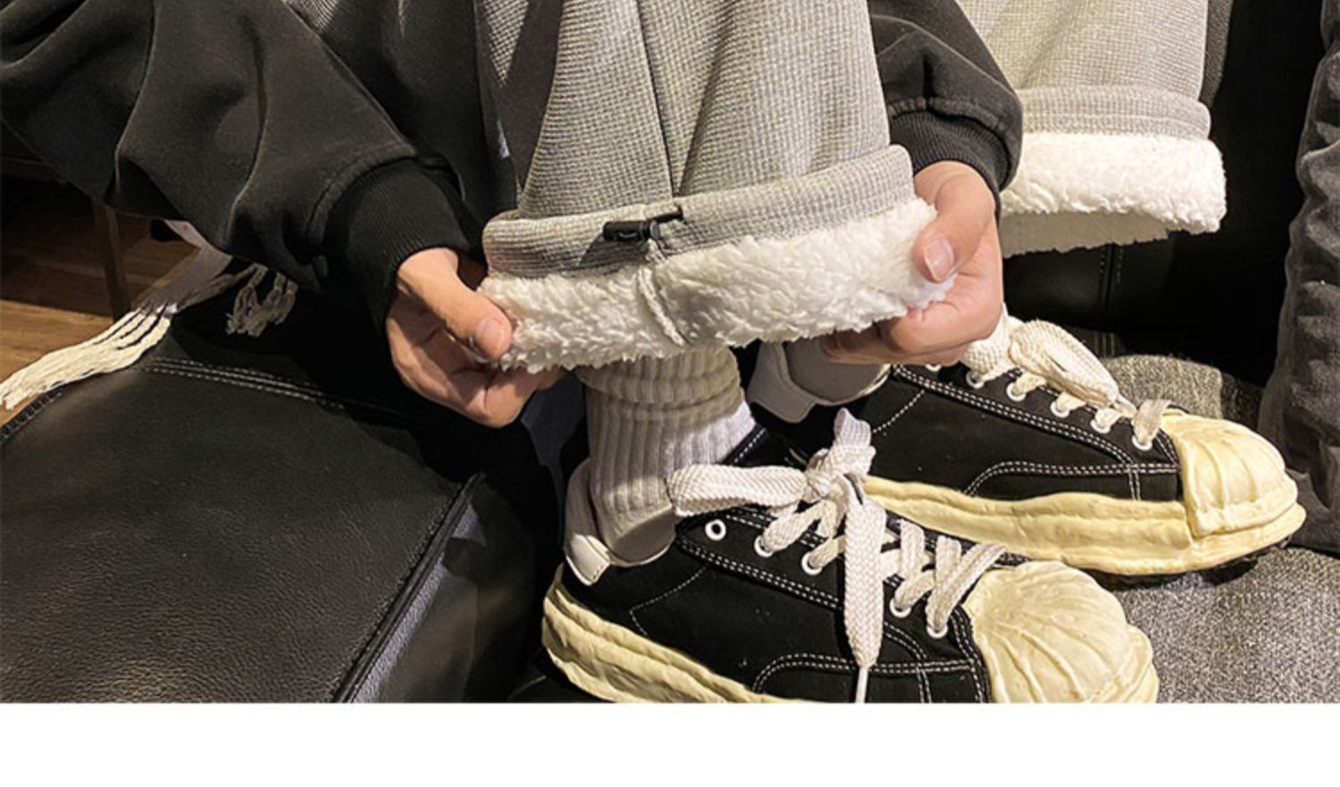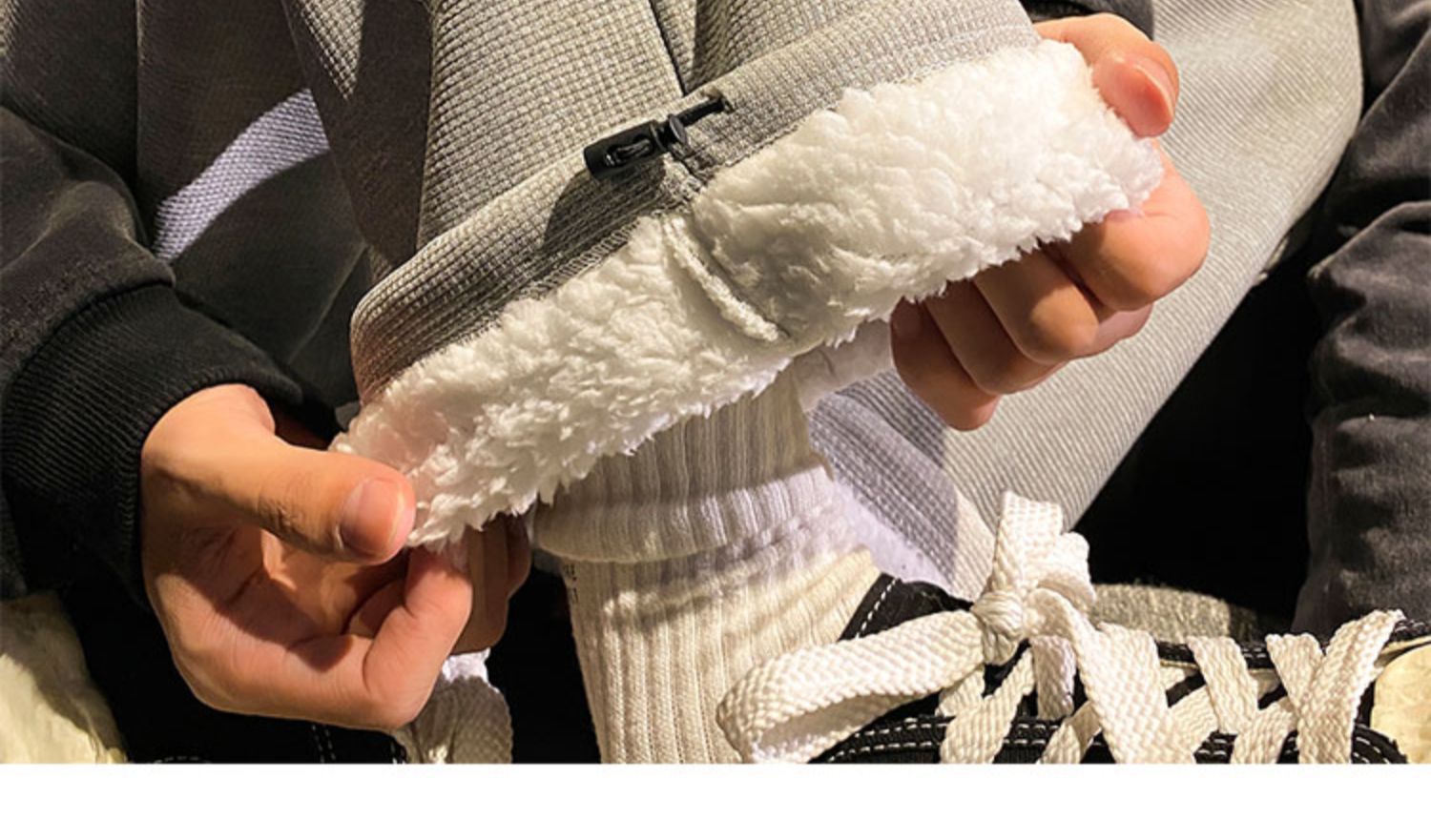 加绒加厚裤子男款冬季华夫格保暖卫裤男青少年羊羔绒束脚运动长裤