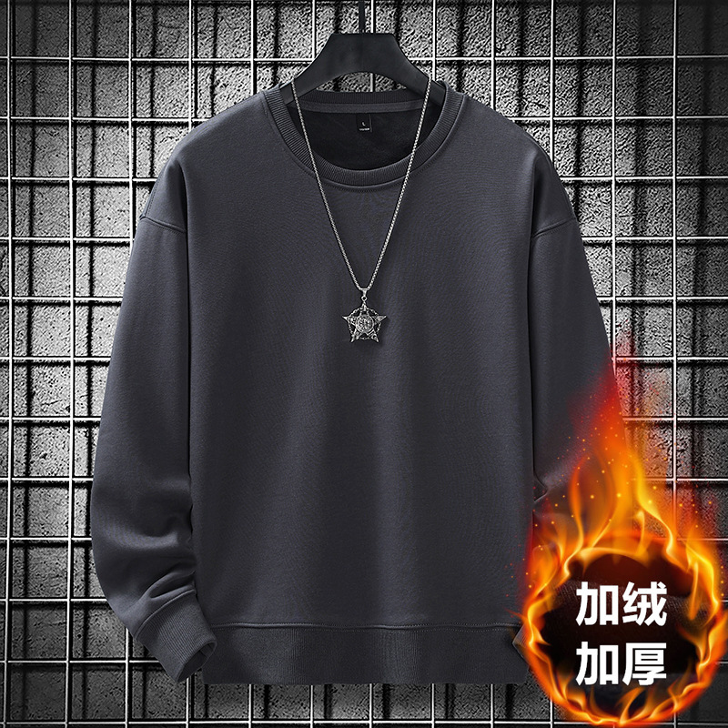 秋冬季加绒长袖卫衣男韩版潮流ins情侣宽松百搭纯色外穿圆领上衣