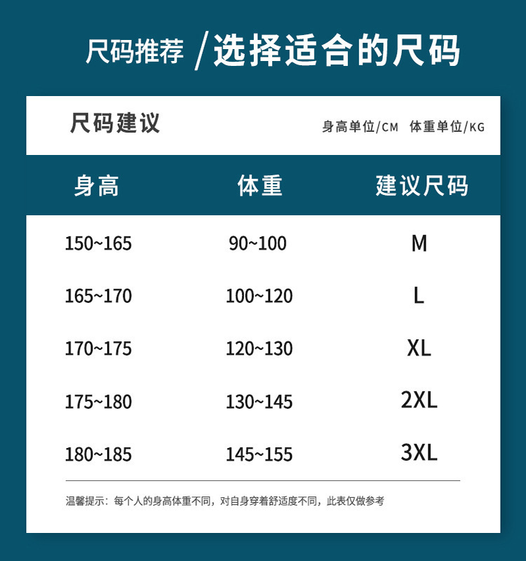 | 3xl 75.00 kg-85.00 kg(3XL150-170斤) | USD $6.55 | 475 piece available |