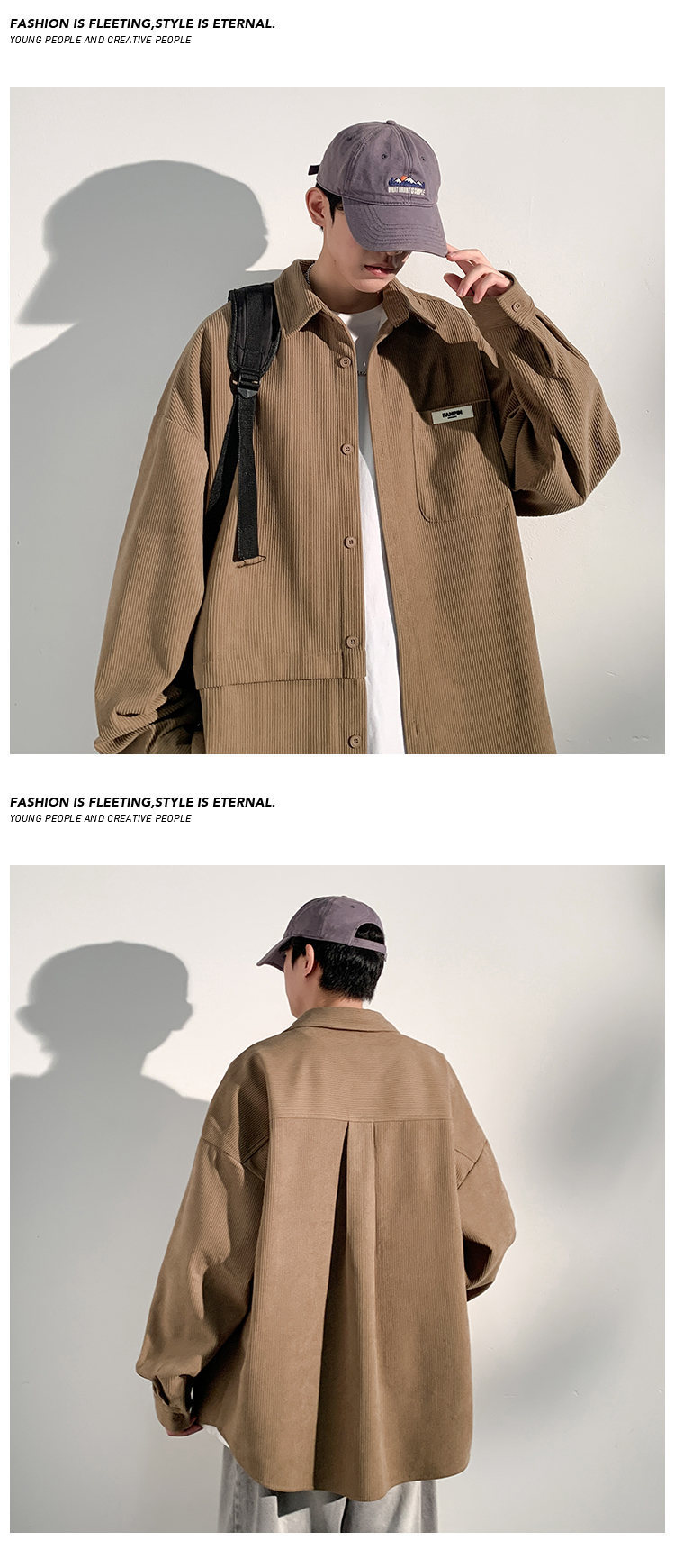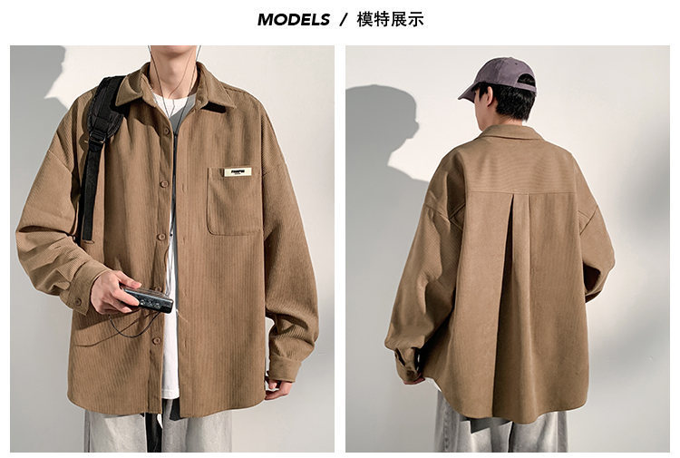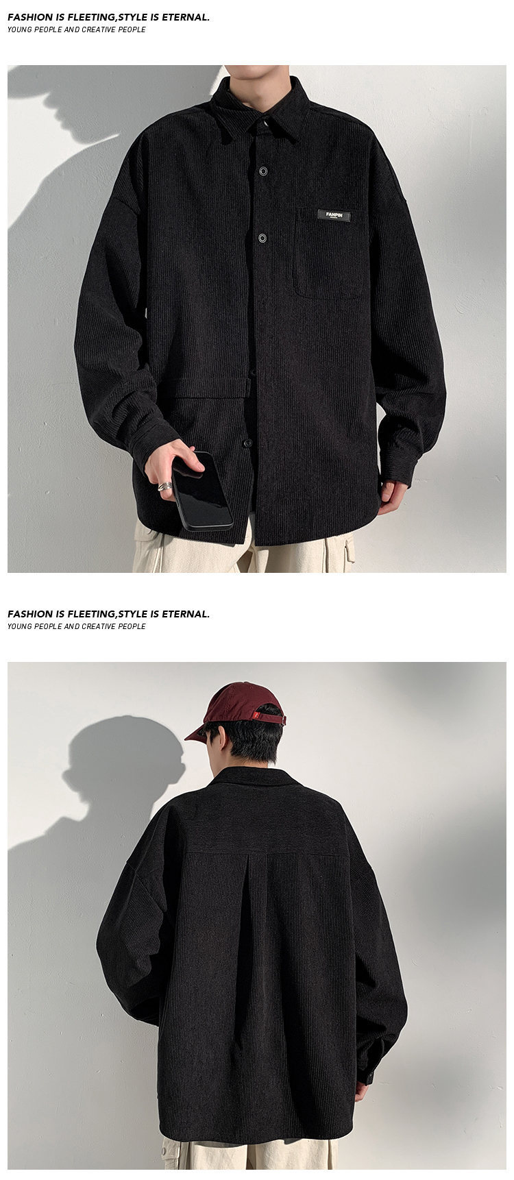 灯芯绒长袖衬衫男春秋季潮流时尚翻领夹克青少年宽松休闲衬衣外套