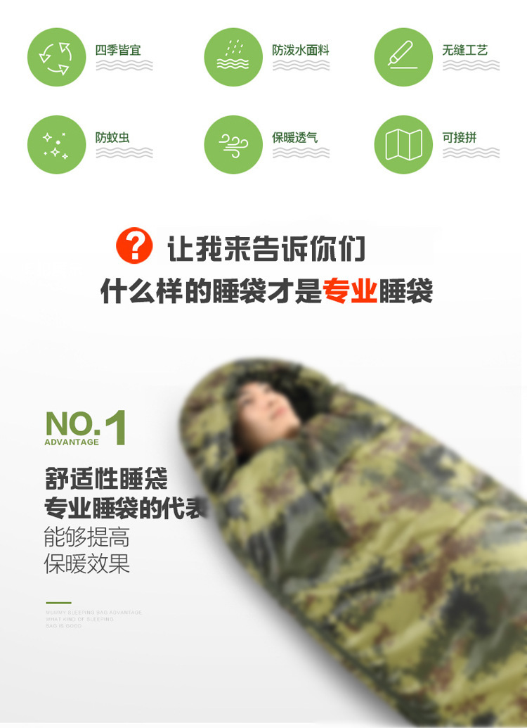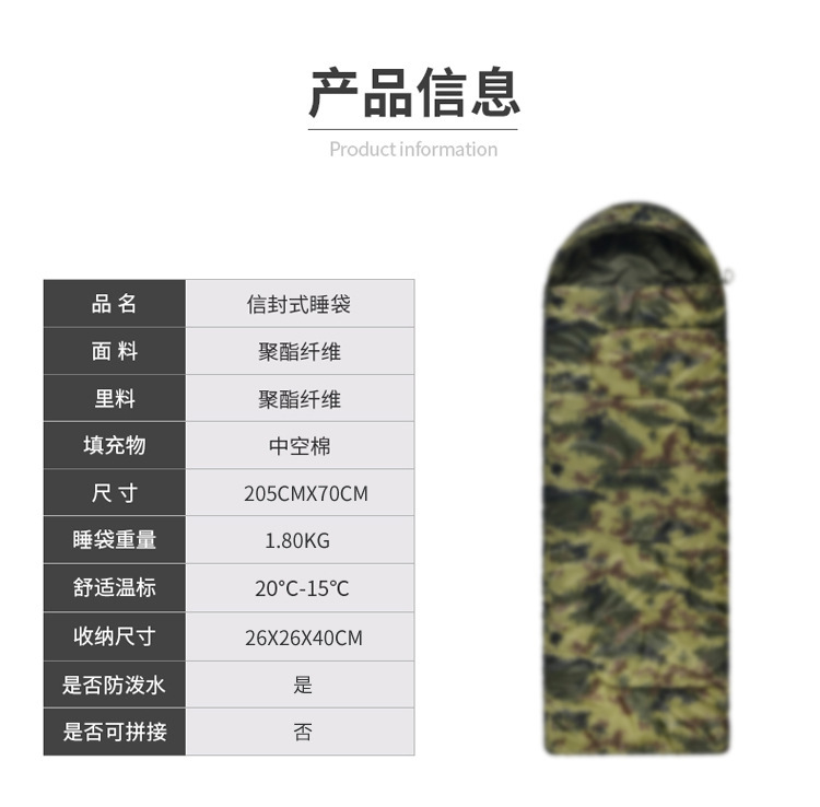 批发应急睡袋加厚野营睡袋旅行可拼接户外保暖单人露营睡袋