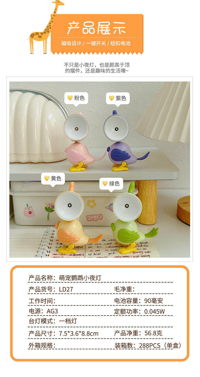 小鸟夜灯卡通鹦鹉可爱摆件小台灯儿童生日小礼物磁吸小夜灯摆件