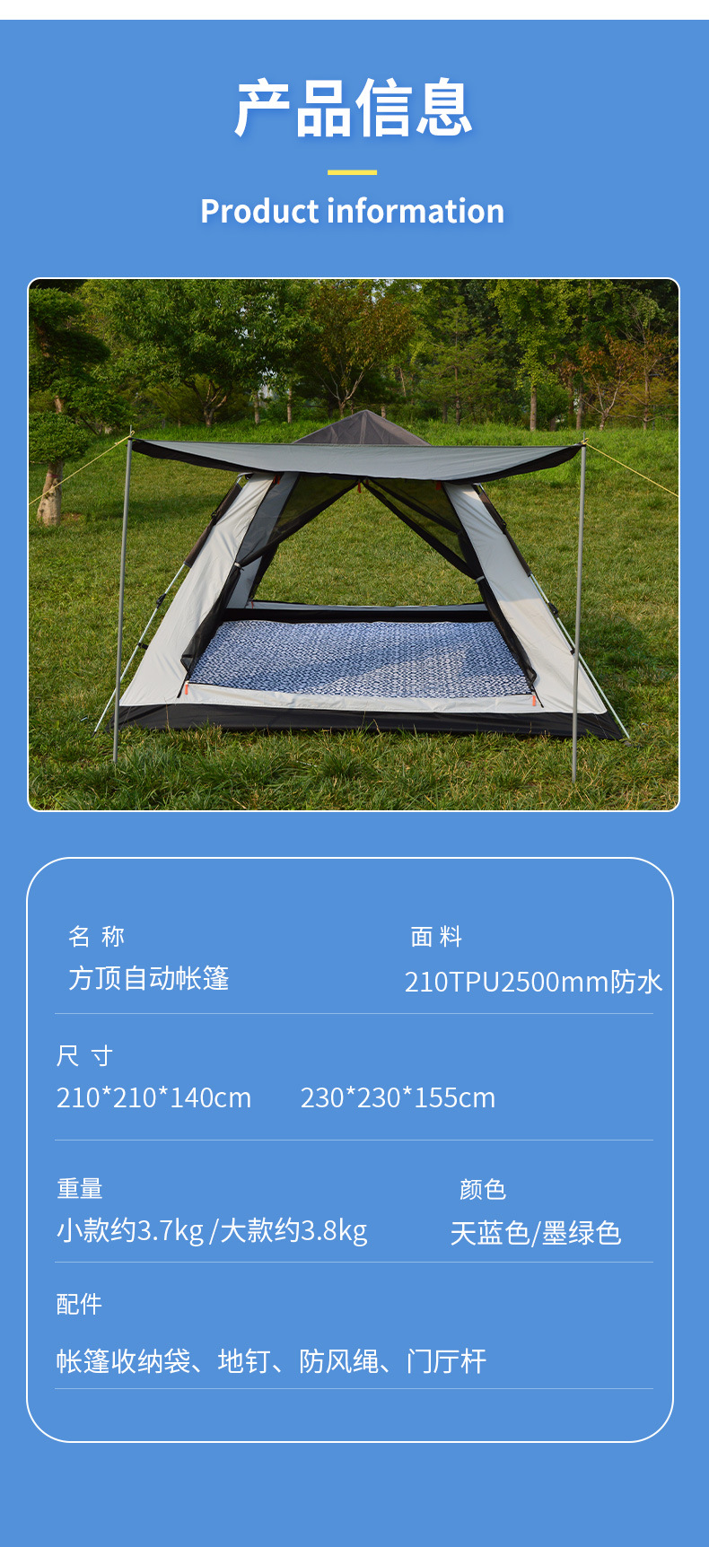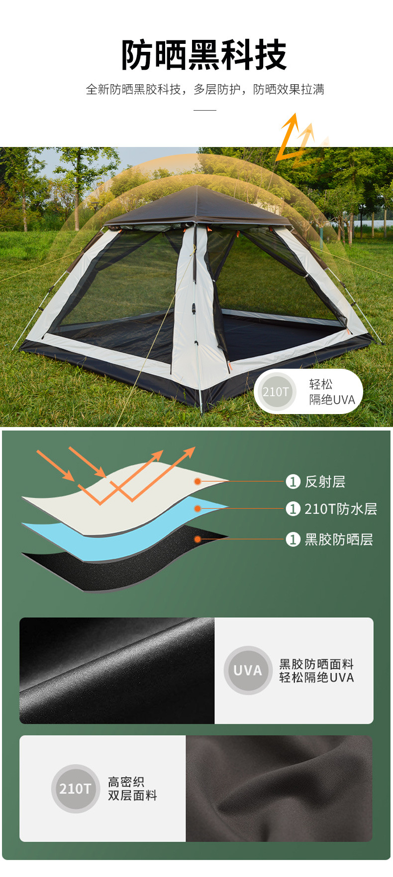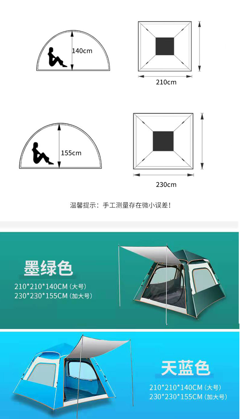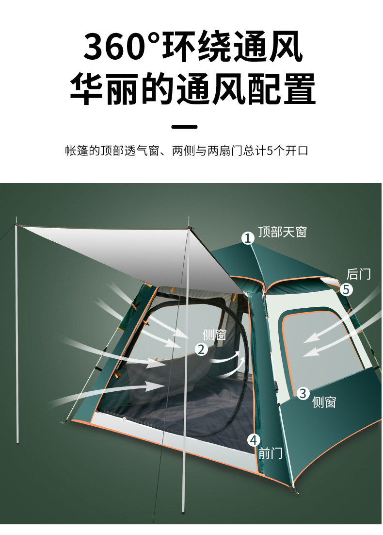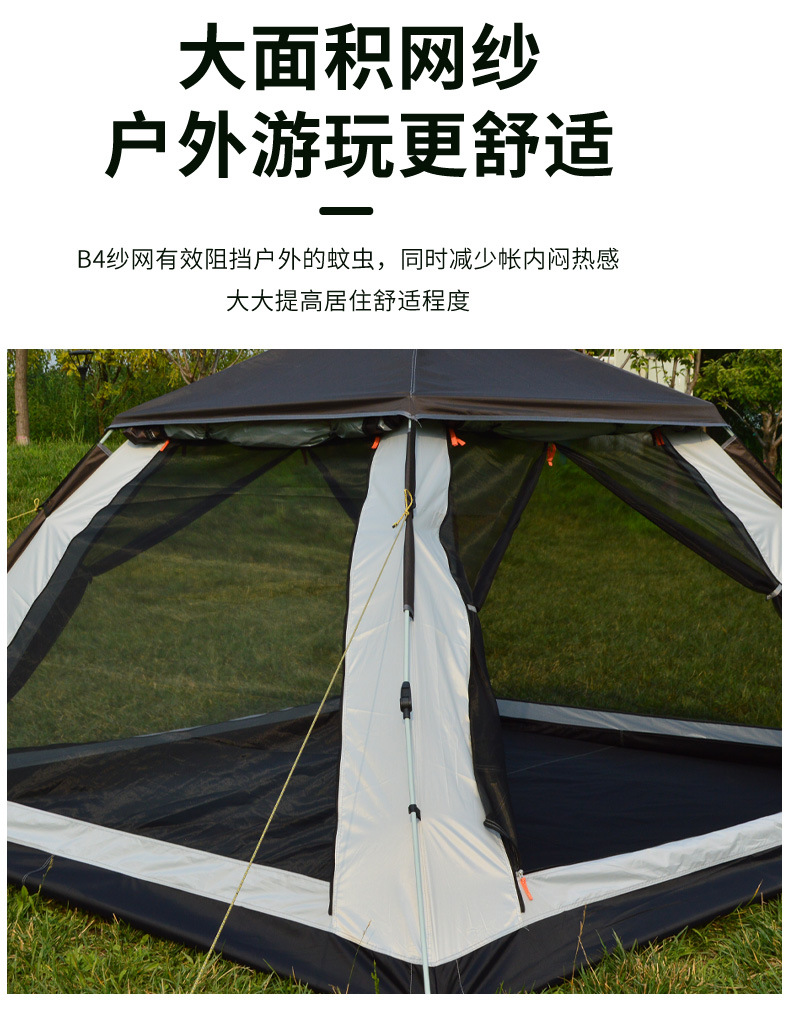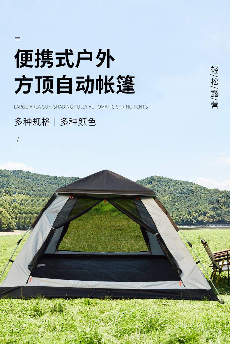 户外四方顶帐蓬沙滩露营便携超轻装备4人全自动速开野外防蚊防晒