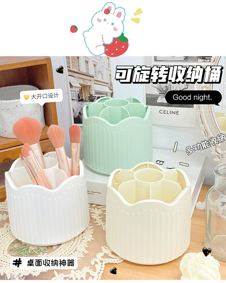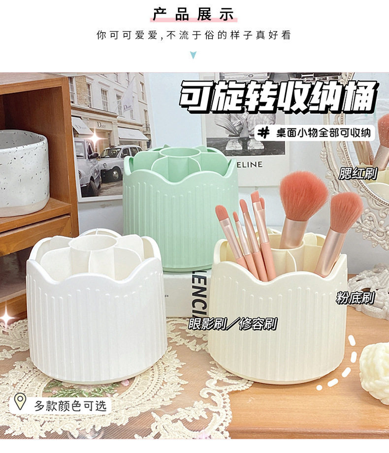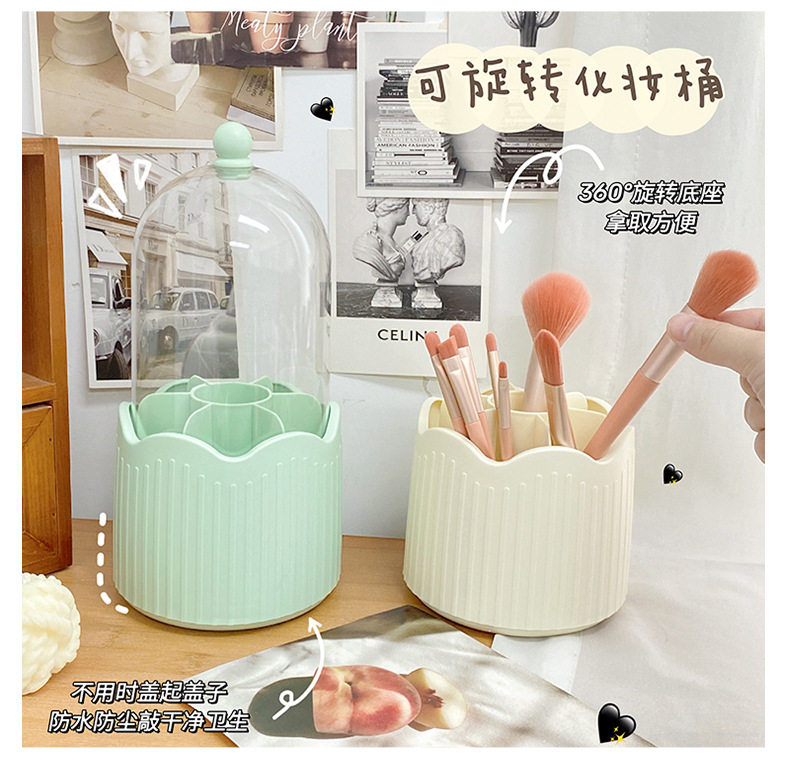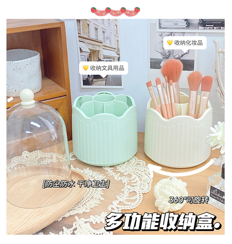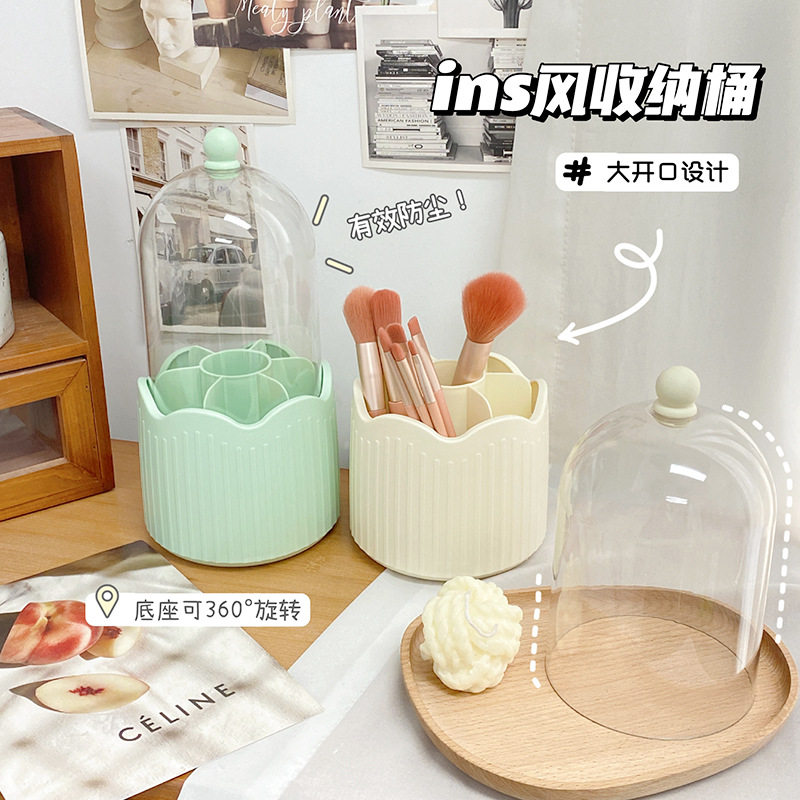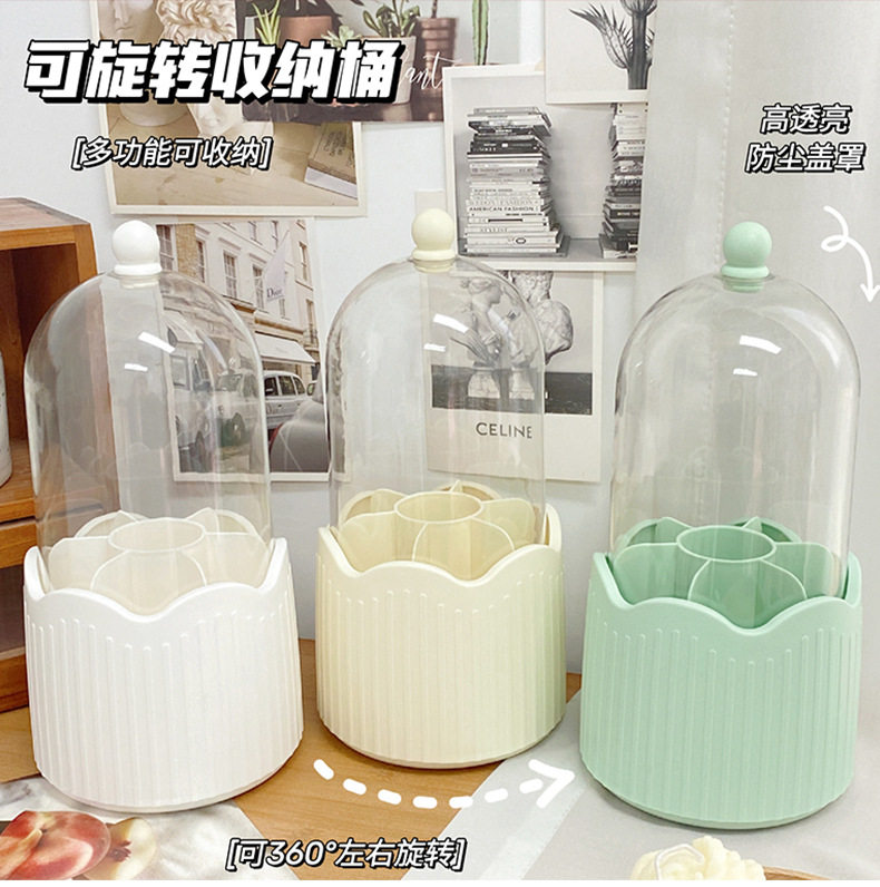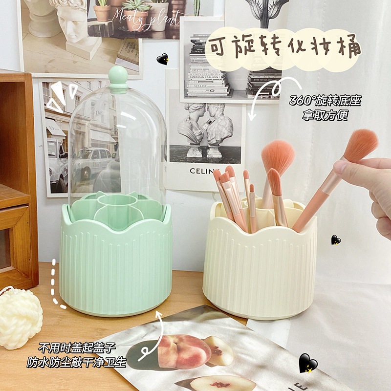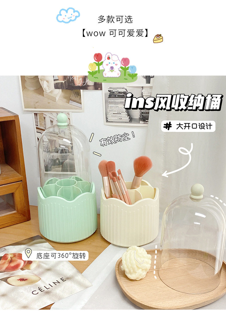 旋转防尘化妆品收纳盒梳妆台桌面笔筒口红眼影化妆刷收纳筒置物架