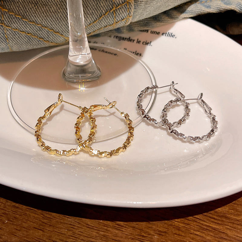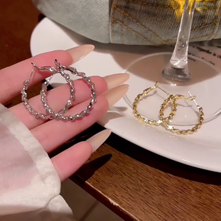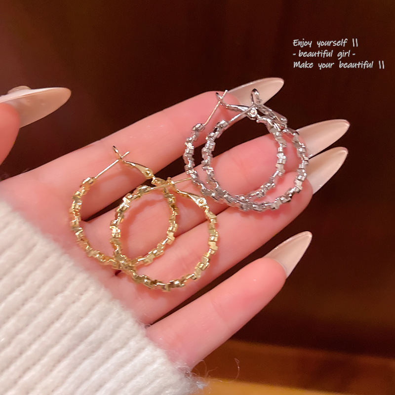 超闪碎银高级感耳圈百搭气质耳饰品欧美个性夸张大圆圈耳环女批发